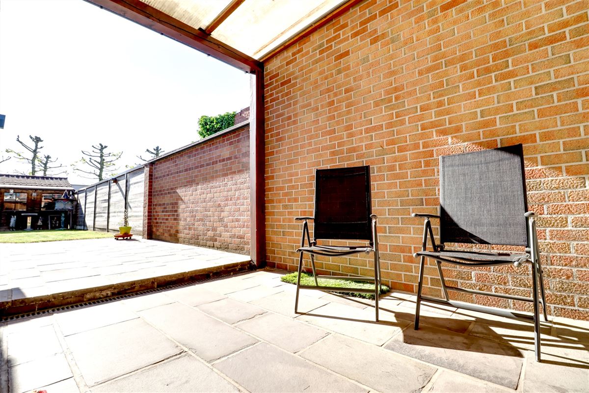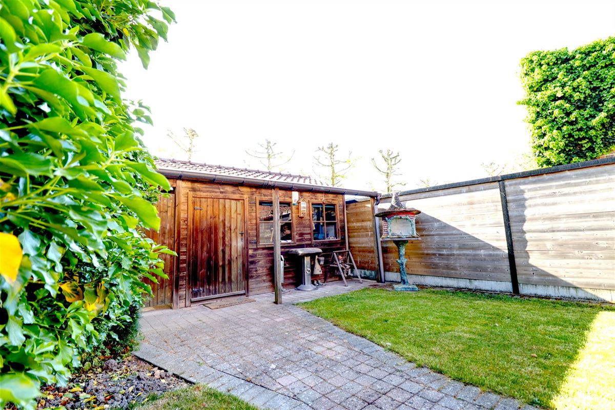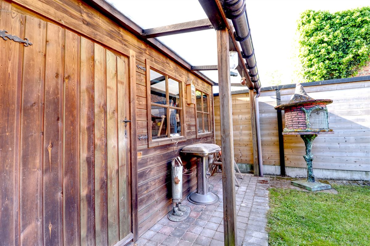 Ook buiten zetten netheid en degelijkheid de toon, een zonnig terras aangevuld met een groene tuin zorgen er voor heel wat buitenplezier. Een kloek tuinhuis zorgt voor extra praktische berging.