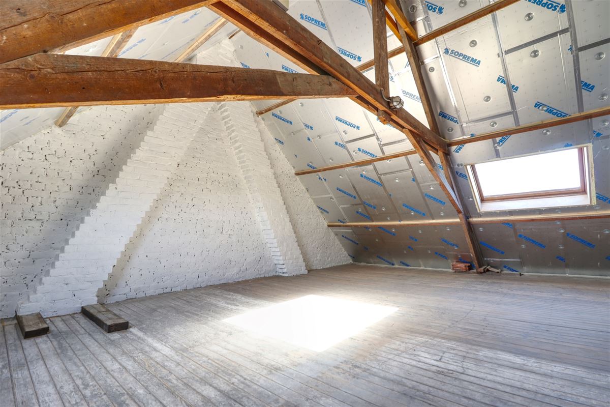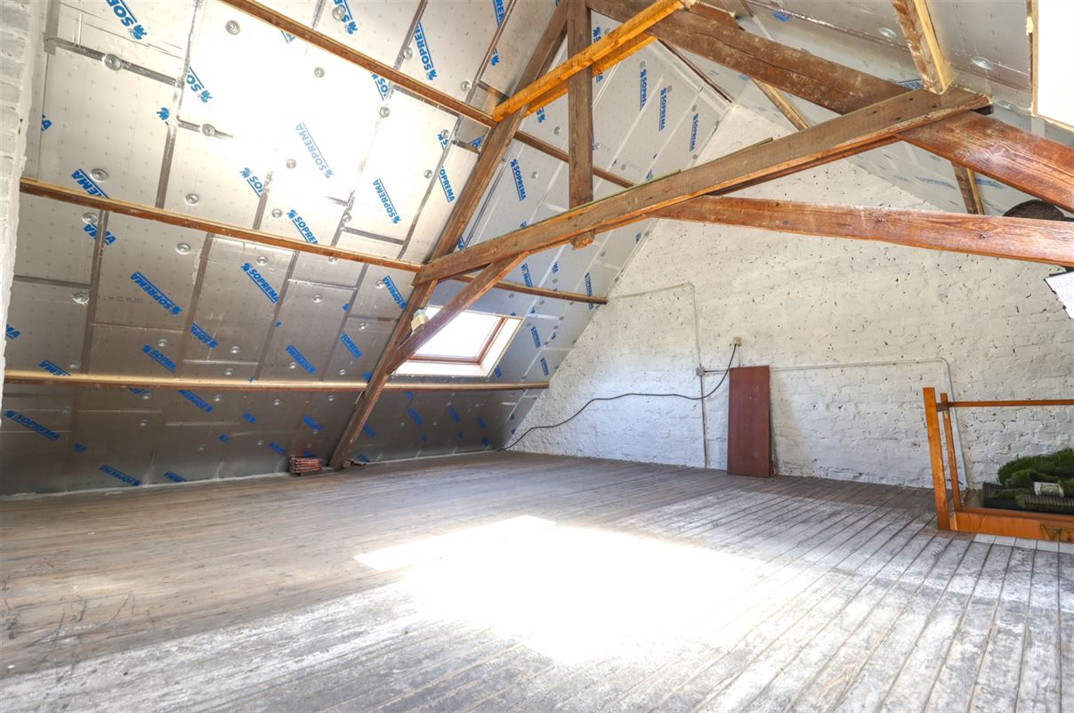 Verder verwent het gelijkvloers met een nette badkamer een slaapkamer en een reuze berging. Op het verdiep zijn er 2 slaapkamers en ruimte voor een vaste trap naar een extra large zolder die netjes geïsoleerd klaar staat voor extra woonruimte.