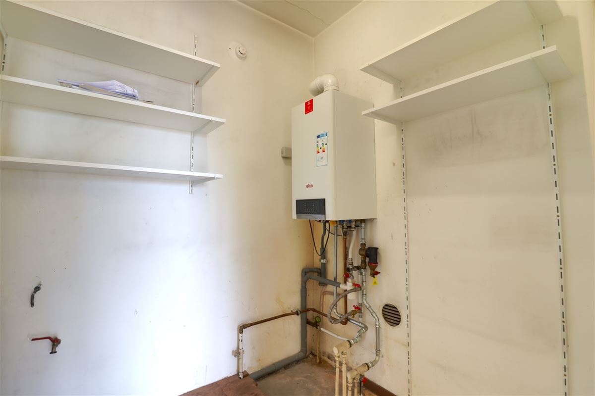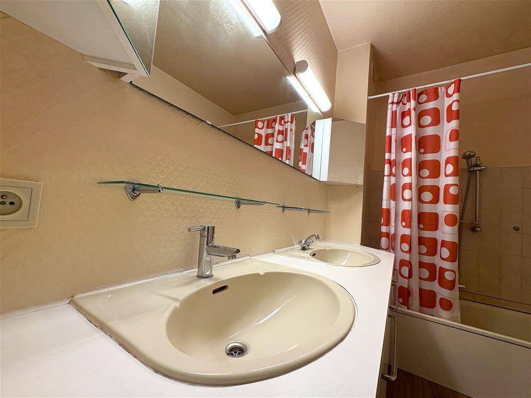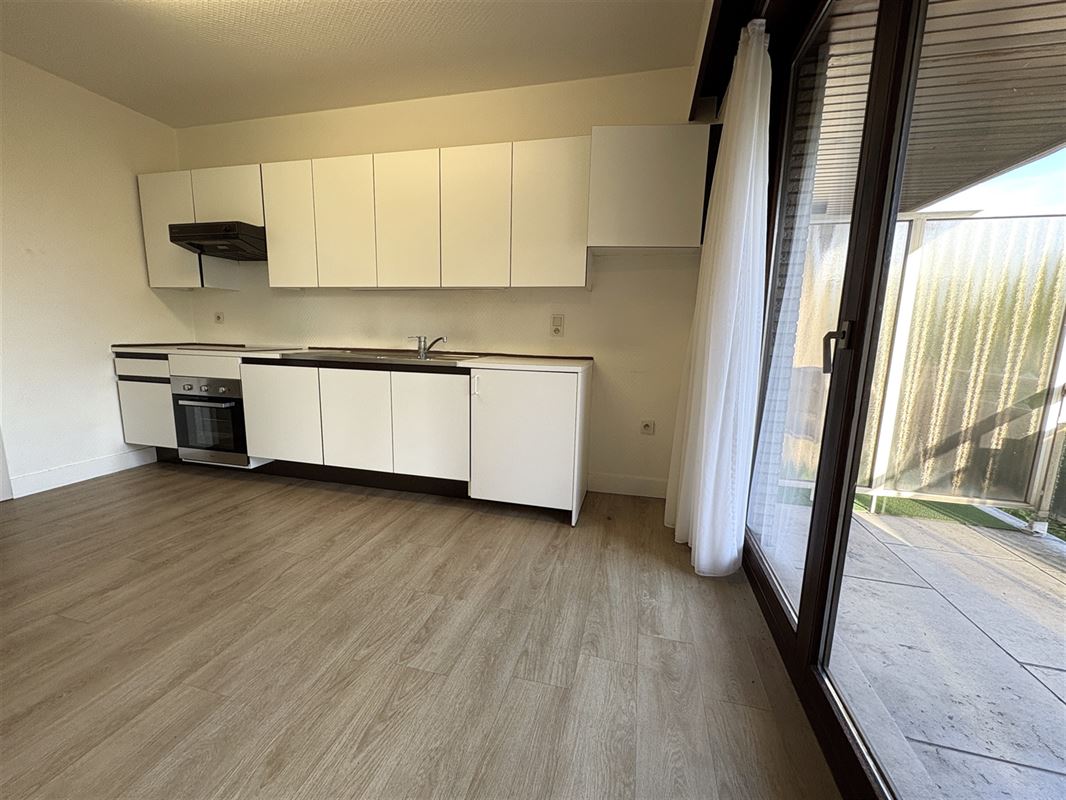 De inkom met vestiaire nis en toilet vormt de verbinding tussen woon- en slaapgedeelte. De leefruimte heeft mooie afmetingen, het grote glasraam zorgt er voor een aangenaam buitencontact.