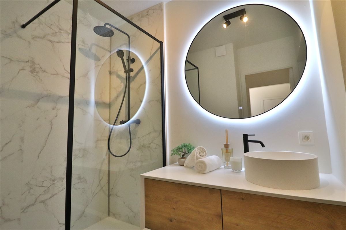 De stijlvolle badkamer beschikt over een inloopdouche en lavabo. Daarnaast is er ook een apart gastentoilet aanwezig. Verder zijn er twee ruime slaapkamers, waarvan één directe toegang heeft tot het gezellige achterterras. Extra troef: er zijn maar liefst twee terrassen, ideaal om in alle rust van de buitenlucht te genieten.