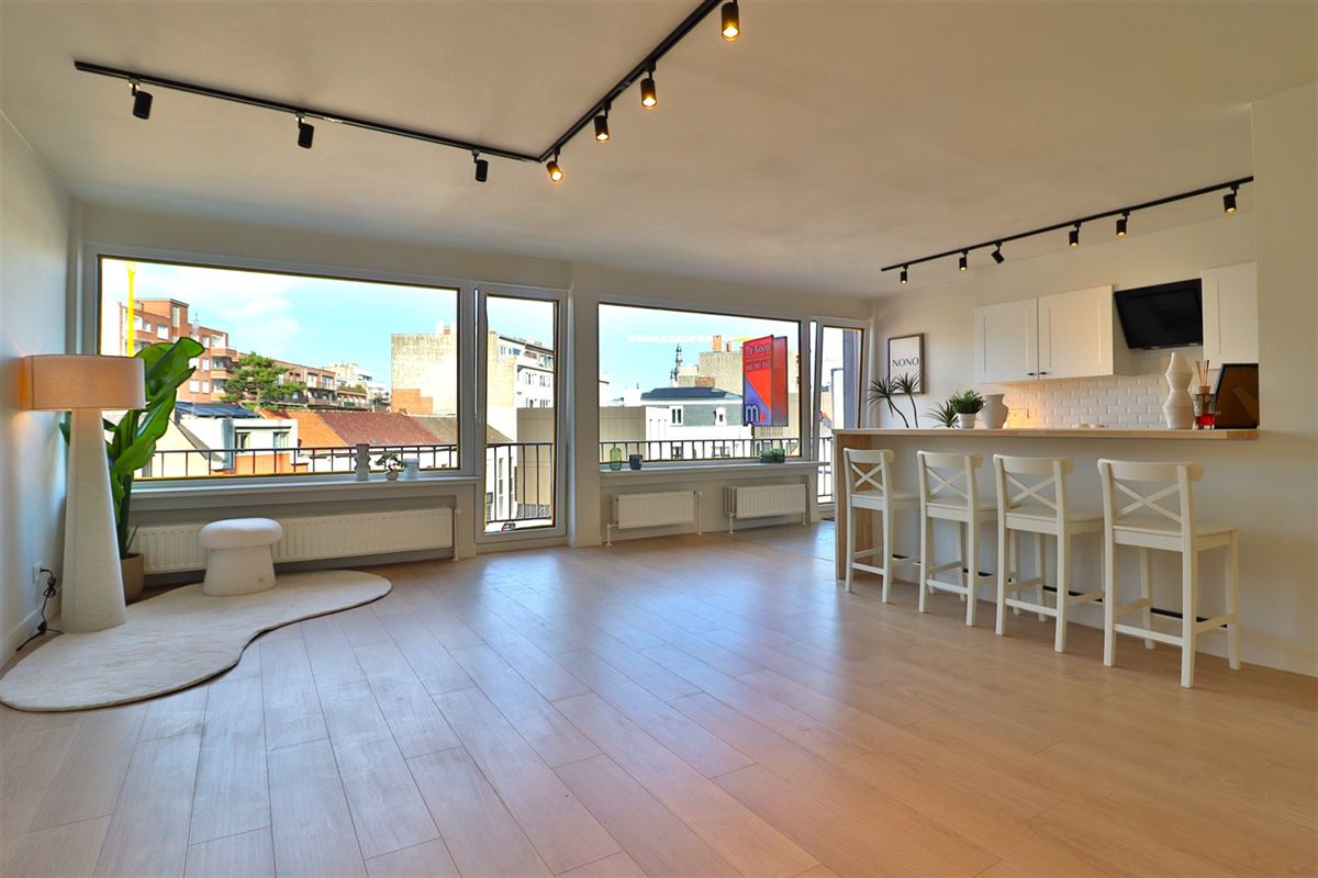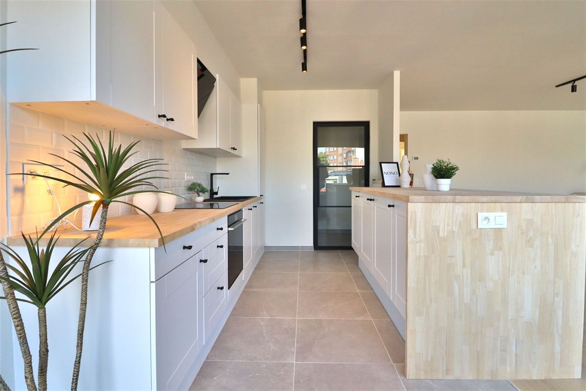 Bij binnenkomst word je verwelkomd in een royale, lichtrijke leefruimte met een open keuken die volledig uitgerust is met moderne toestellen. Aansluitend vind je een praktische berging.