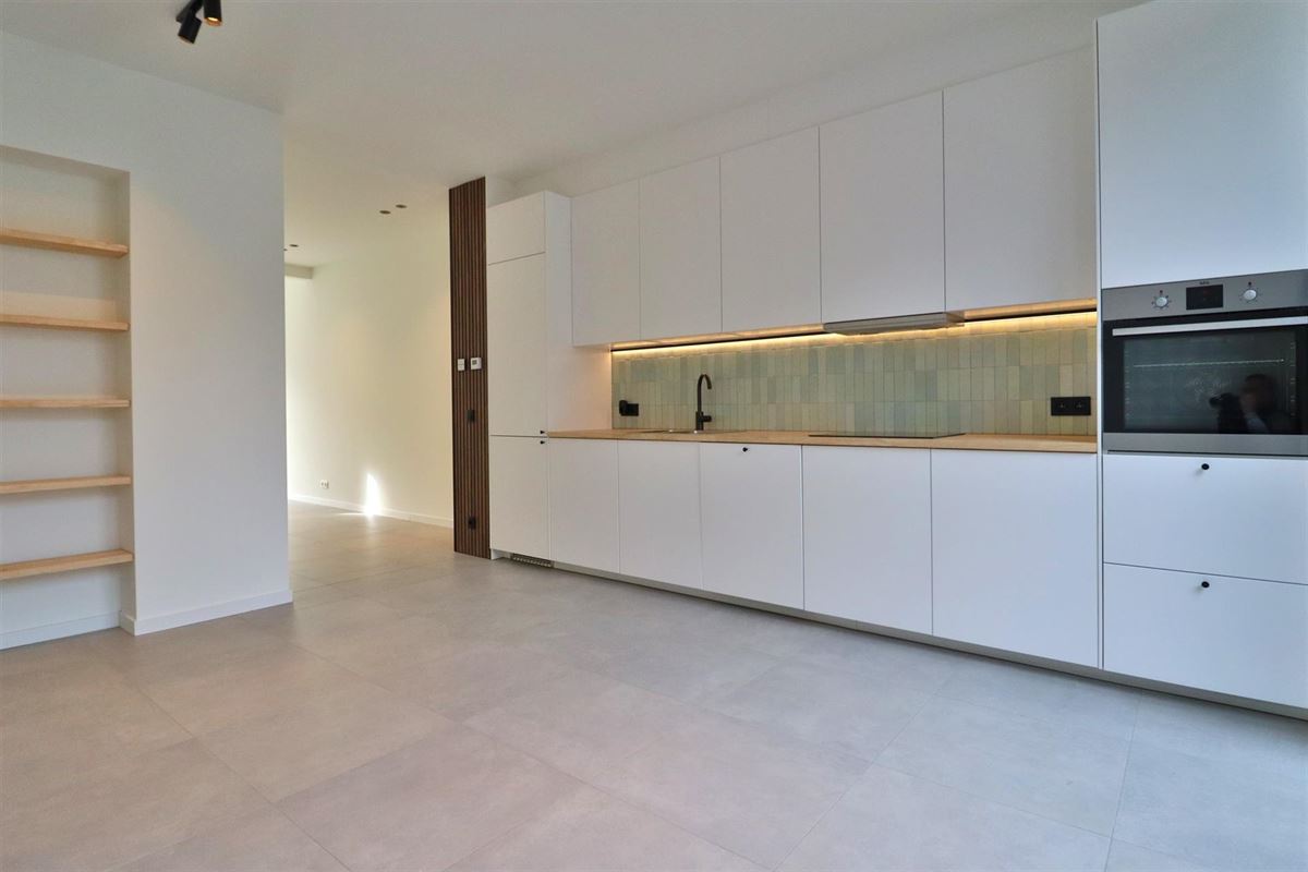 Deze volledig vernieuwde woning op de Oudenaardsesteenweg combineert modern wooncomfort met een lichtrijke, open indeling. Op het gelijkvloers bevindt zich de ruime leefruimte met aansluitend een stijlvolle keuken met witte fronten, houten werkblad en geïntegreerde toestellen. Grote schuiframen zorgen voor veel lichtinval en geven toegang tot de onderhoudsvriendelijke tuin met maximale privacy.