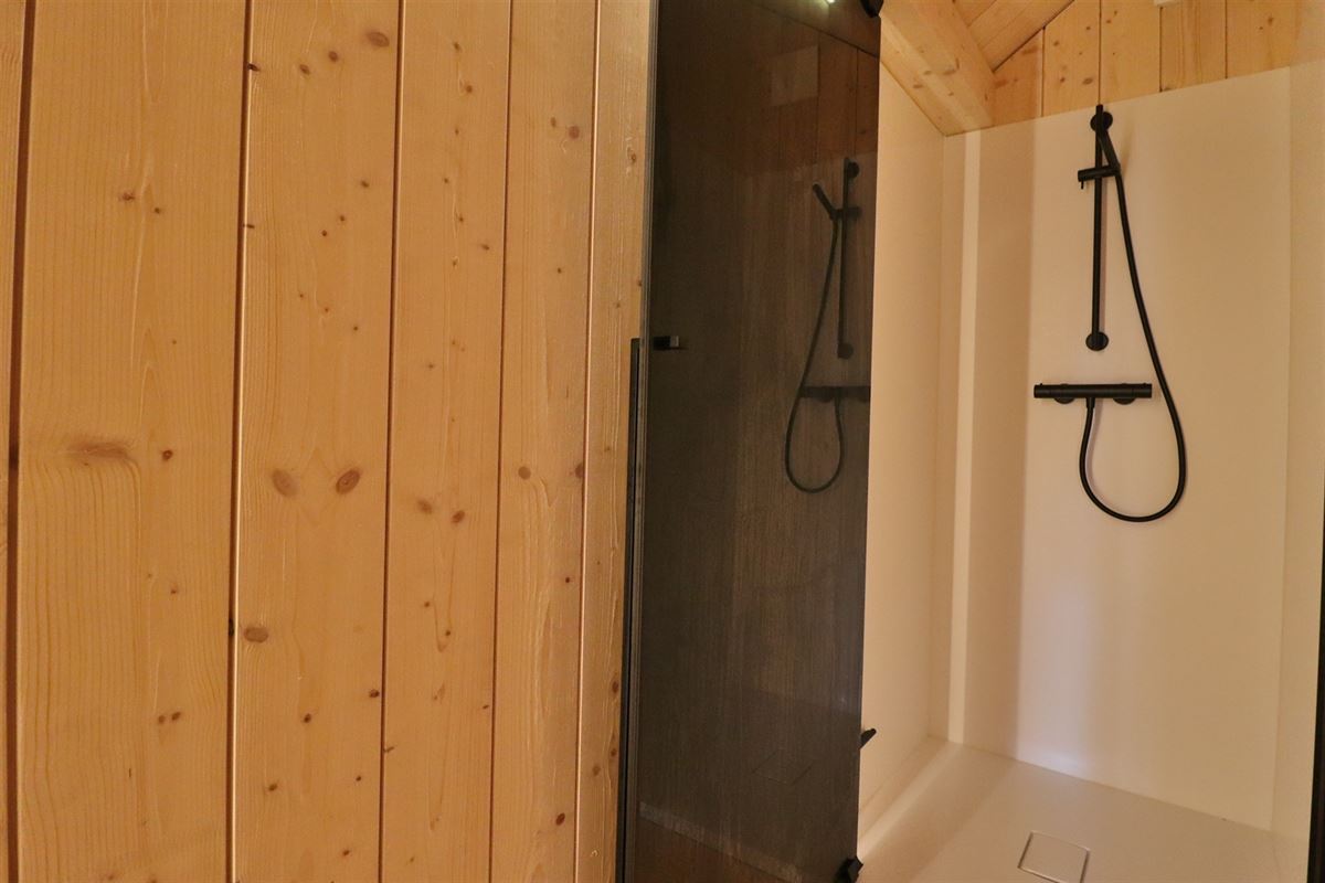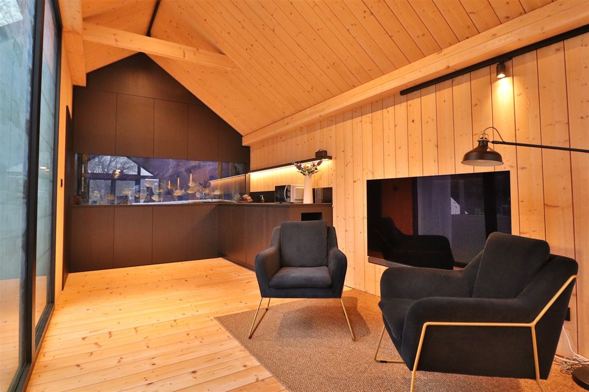 Deze pakt uit met een bewoonbare oppervlakte van 44m² en is hoogwaardig ingericht en afgewerkt met kitchenette, toilet en douche en is verwarmd met een lucht/lucht warmtepomp.