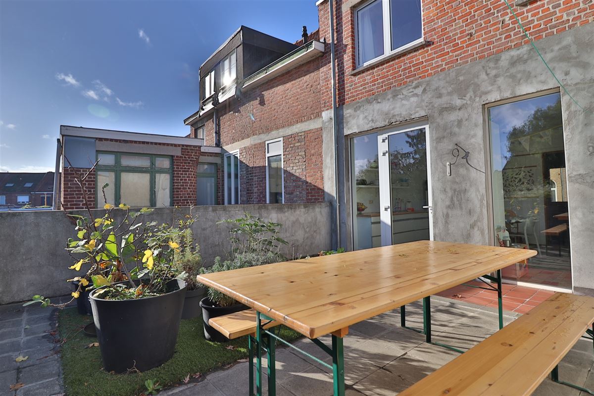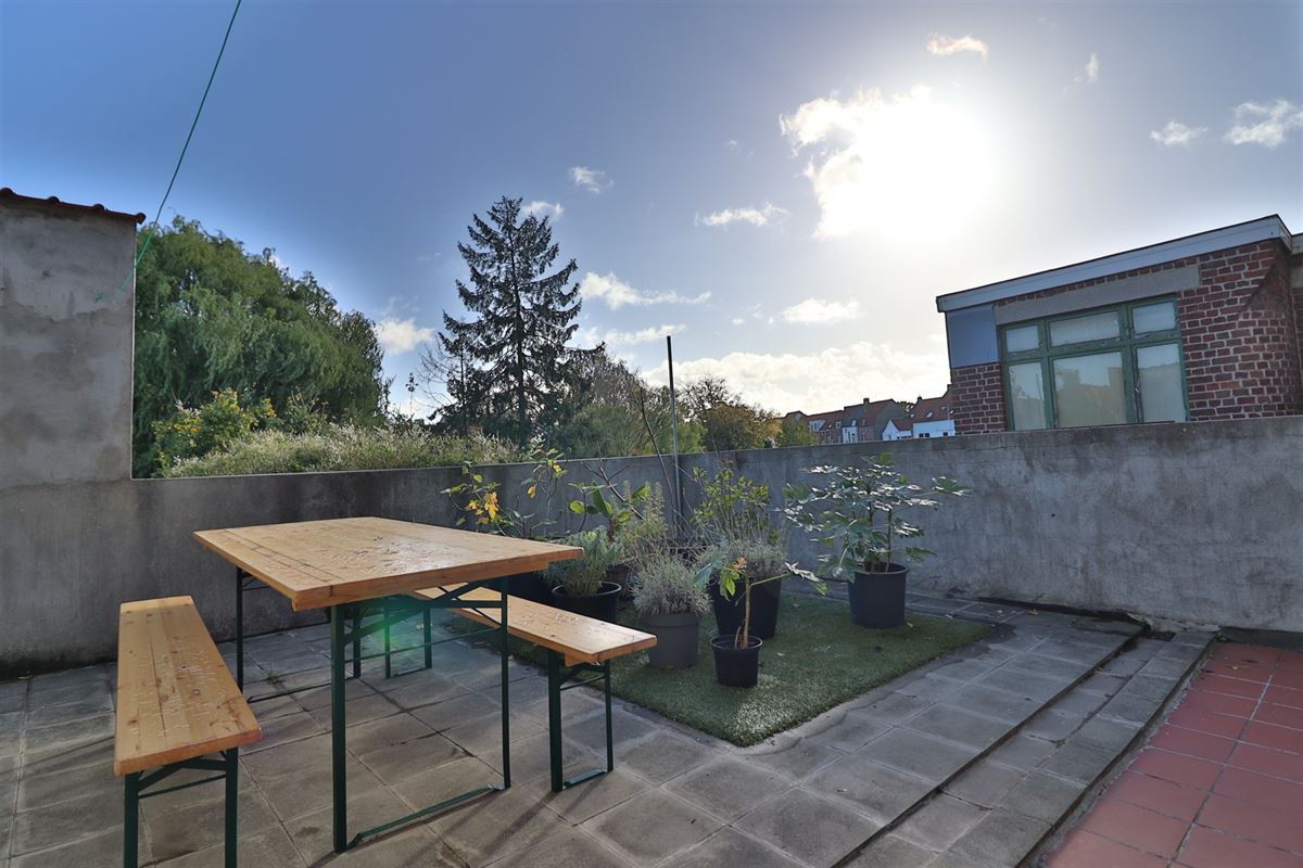 In de gezellige Elfde-Julilaan vinden we deze authentieke woning ingedeeld op het gelijkvloers met de inkom en grote garage/werkplaats (+-65m²), met doorsteek naar de tuin. Op de eerste verdieping is de woonkamer en keuken, samen met een zalig dakterras.