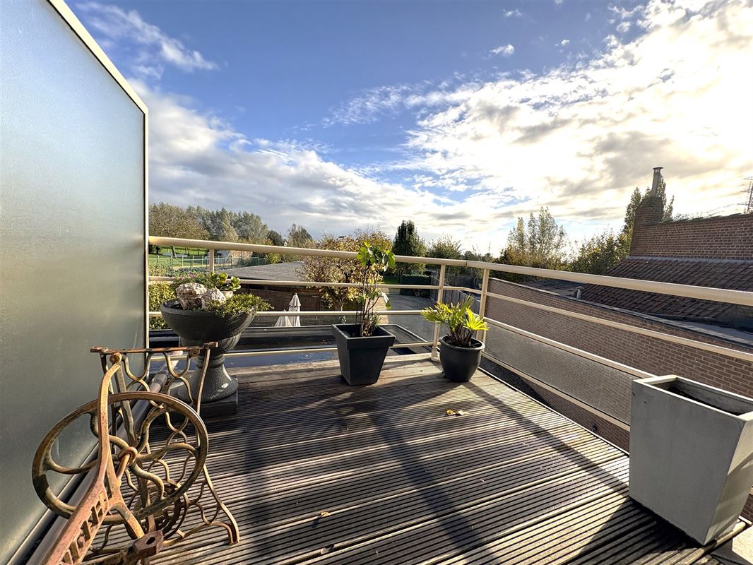 Achteraan zorgen grote glaspartijen voor heel veel licht en een opmerkelijk zicht.  Het terras sluit mooi aan en staat garant voor zalige buitenmomenten.