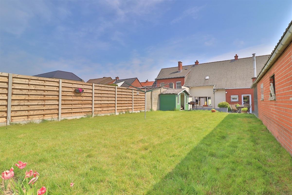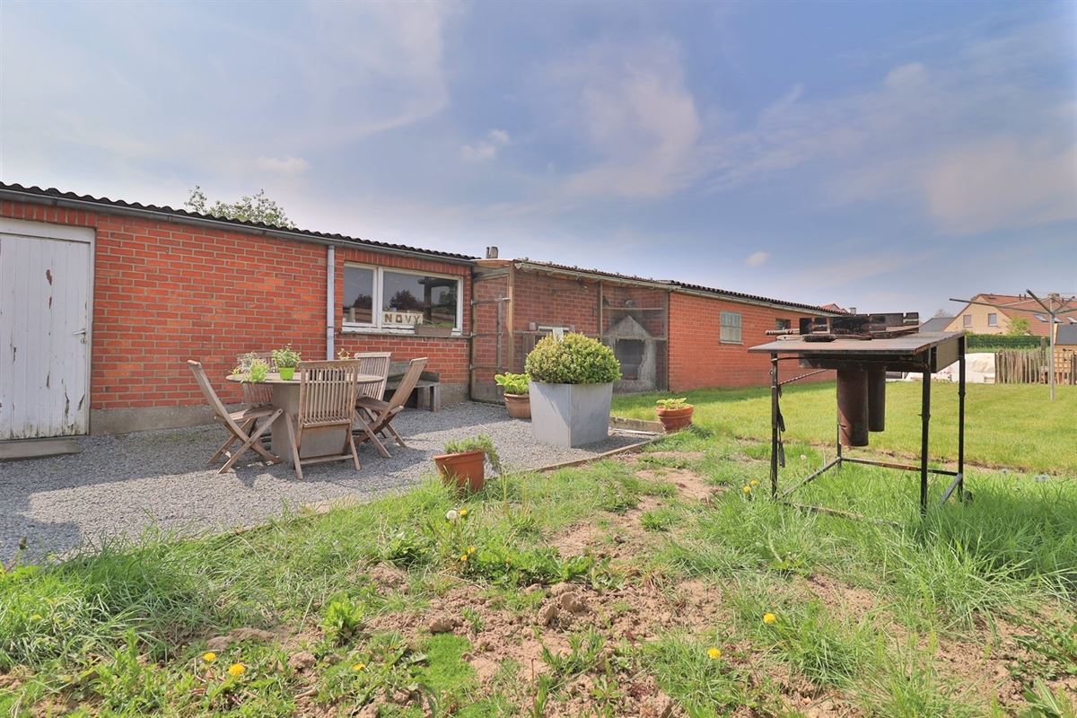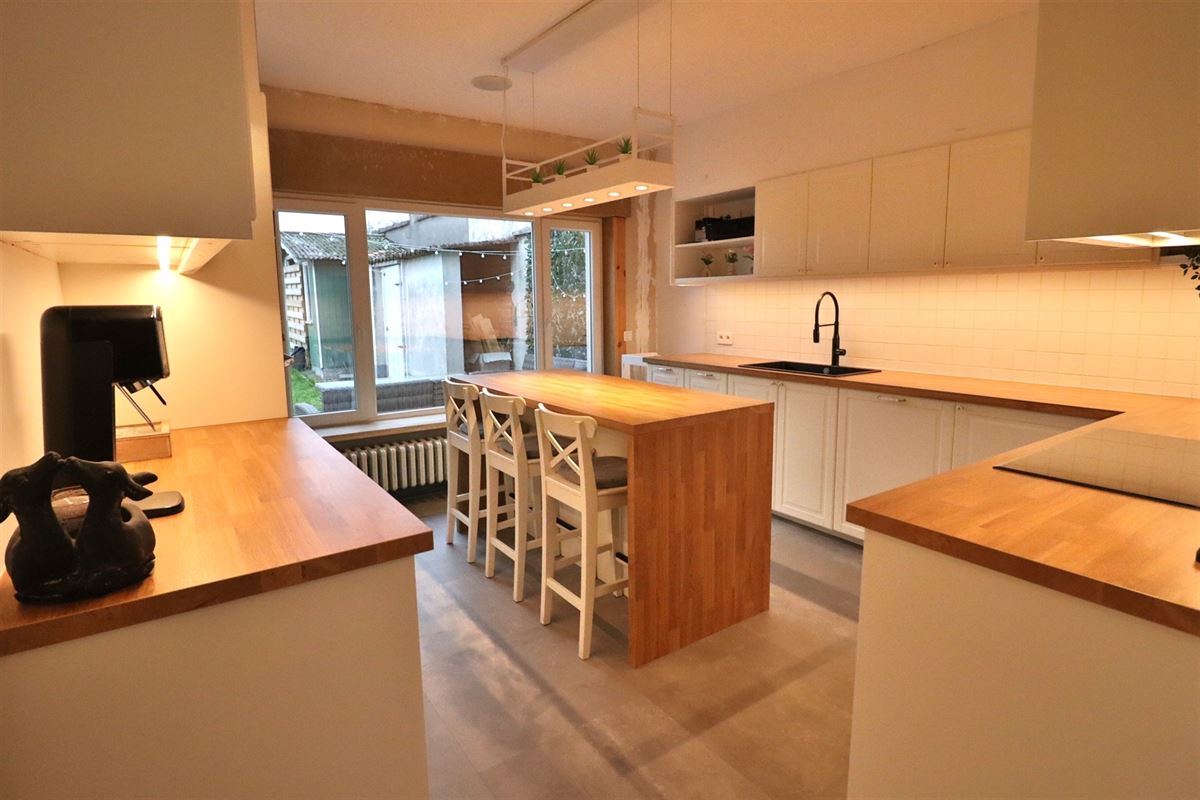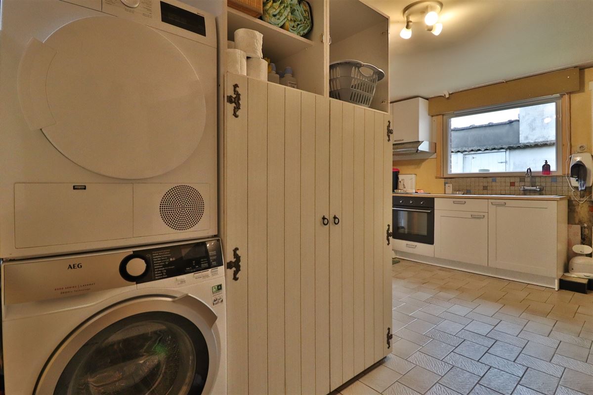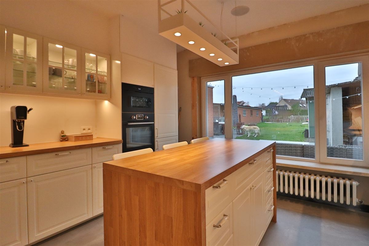 Bestaande uit de inkom, volledig vernieuwde keuken met ruime eetplaats, ruime zithoek, wasruimte, badkamer, apart toilet en bij-keuken/berging. De eerste verdieping beschikt over drie slaapkamers, een bureau en een zolderberging waar nog de mogelijkheid is om een dressing te voorzien. Ruime oprit naast de woning en grote garage/werkplaats van 115m² (+-6m x 20m)!