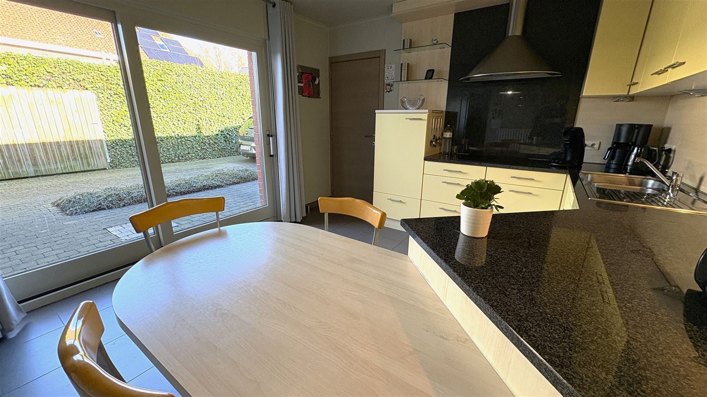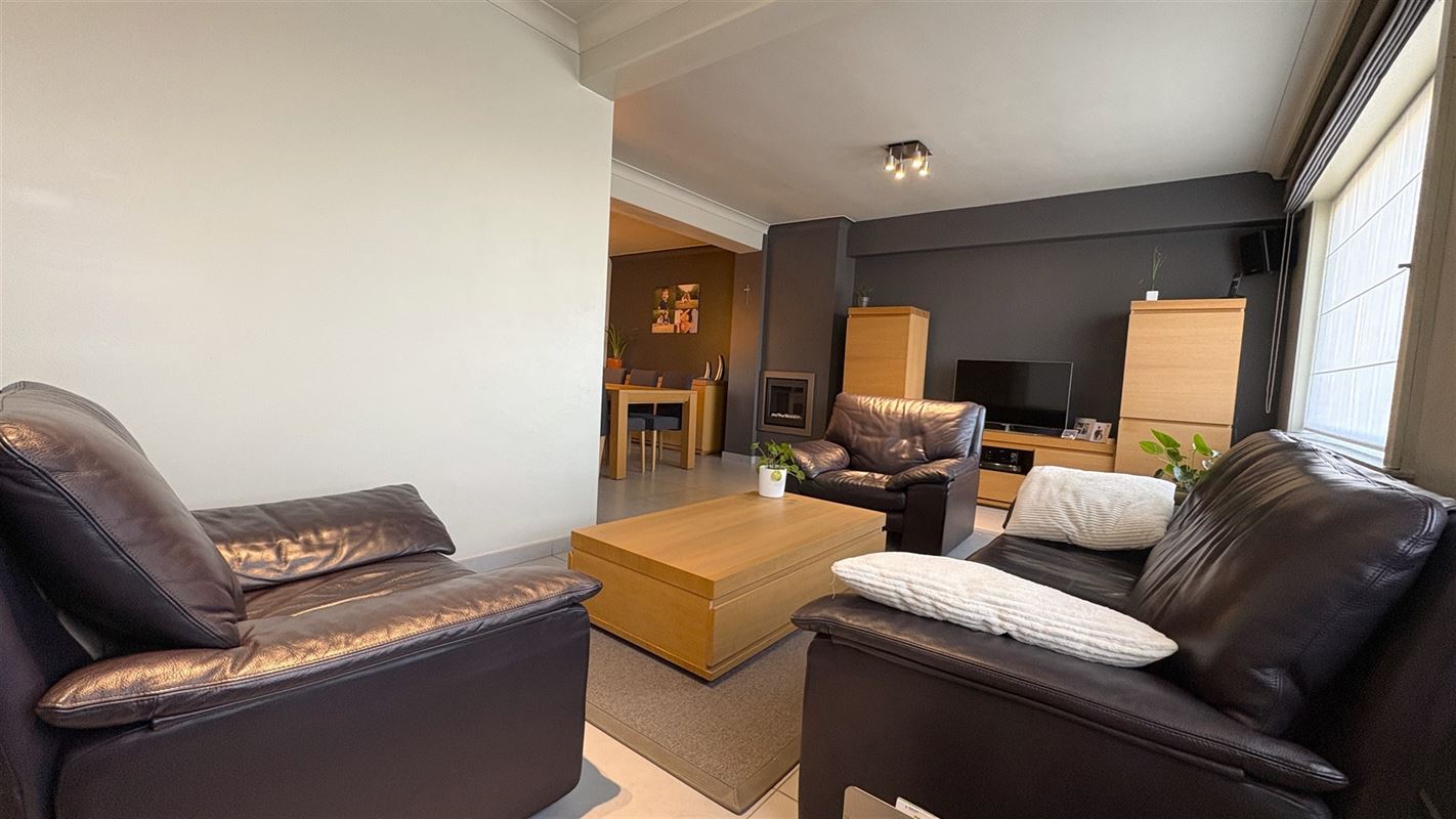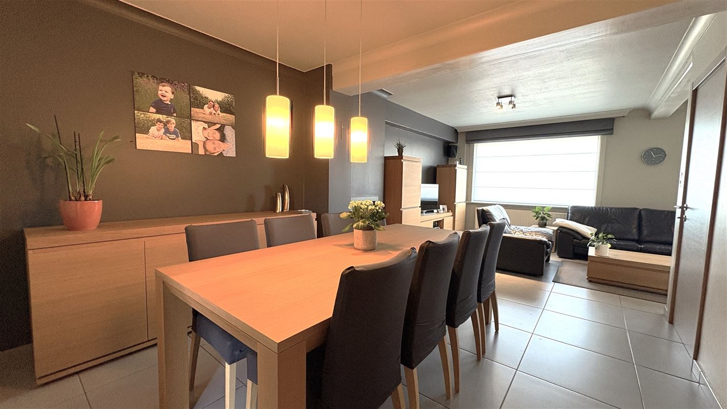 De leefruimte met zit- en eethoek is netjes aangekleed en geniet van een zalig open zicht.