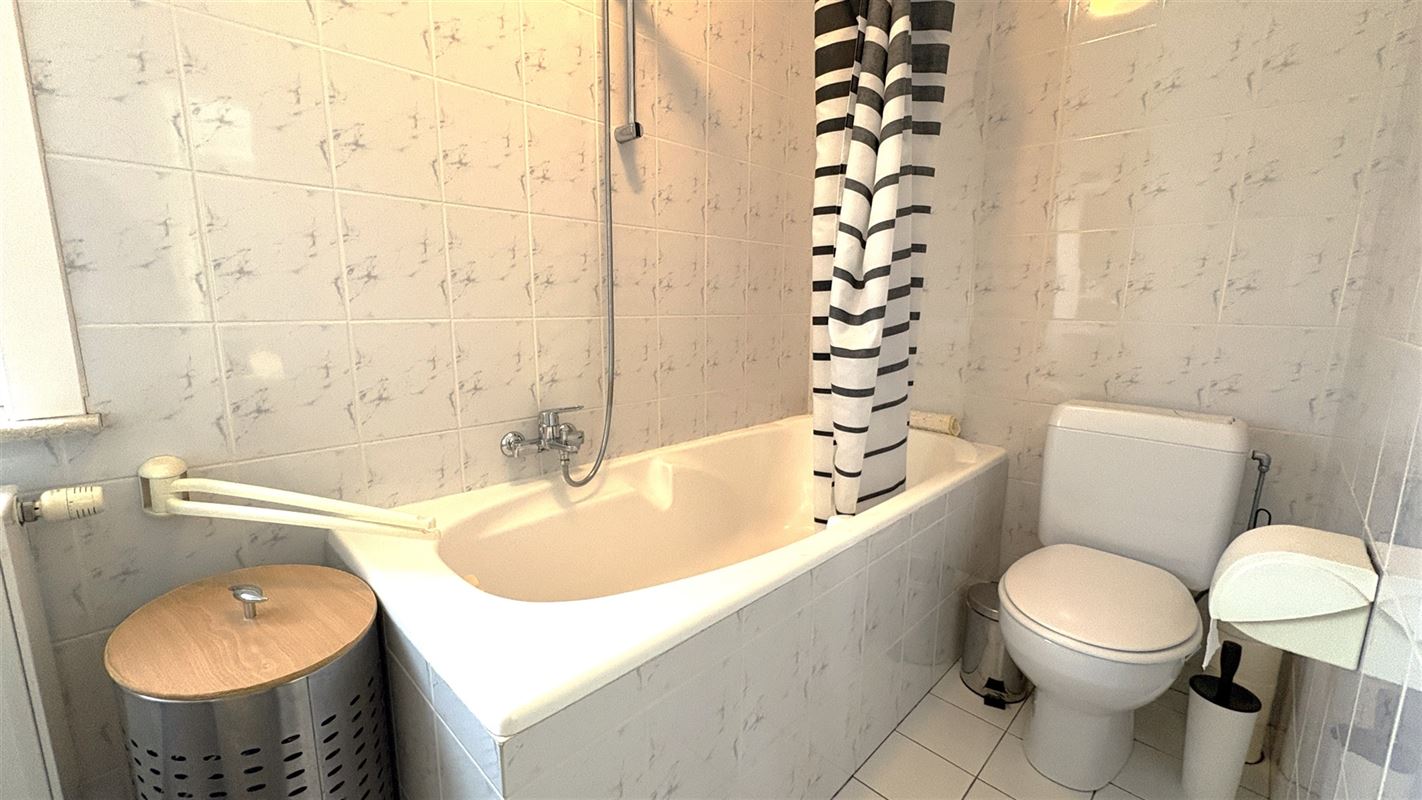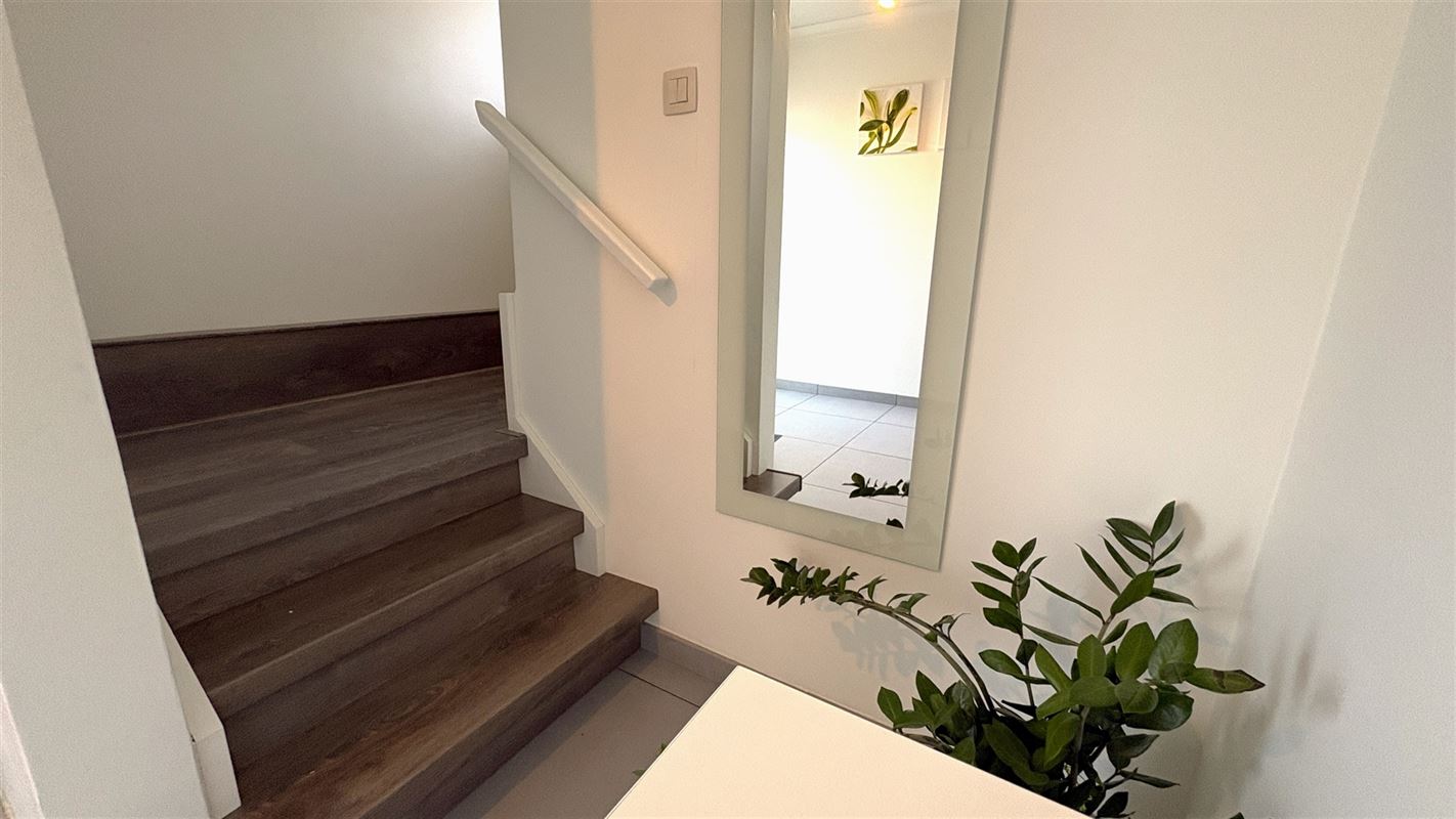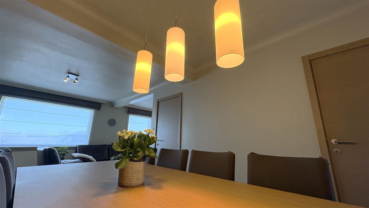 De leefruimte met zit- en eethoek is netjes aangekleed en geniet van een zalig open zicht.