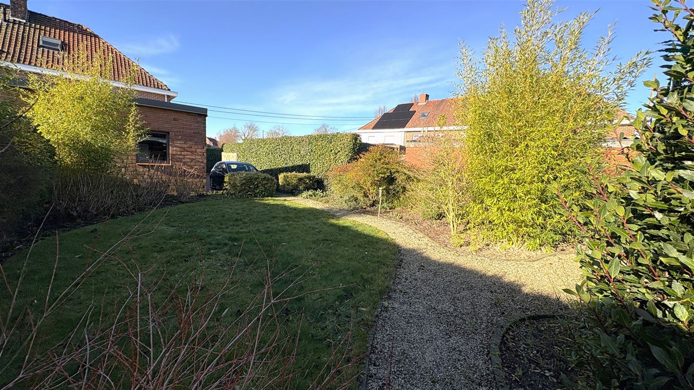 Weg van de straat brengt een groene voortuin ons tot bij de inkom die zorgt voor een warme welkom.