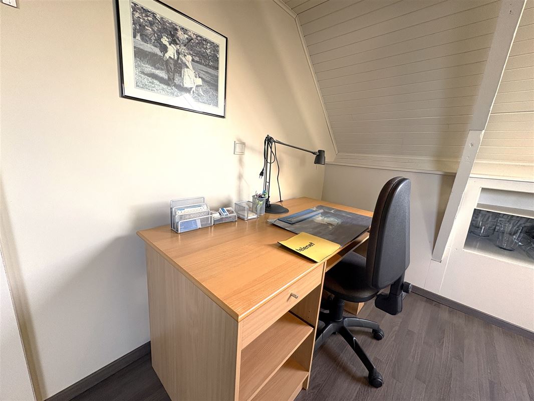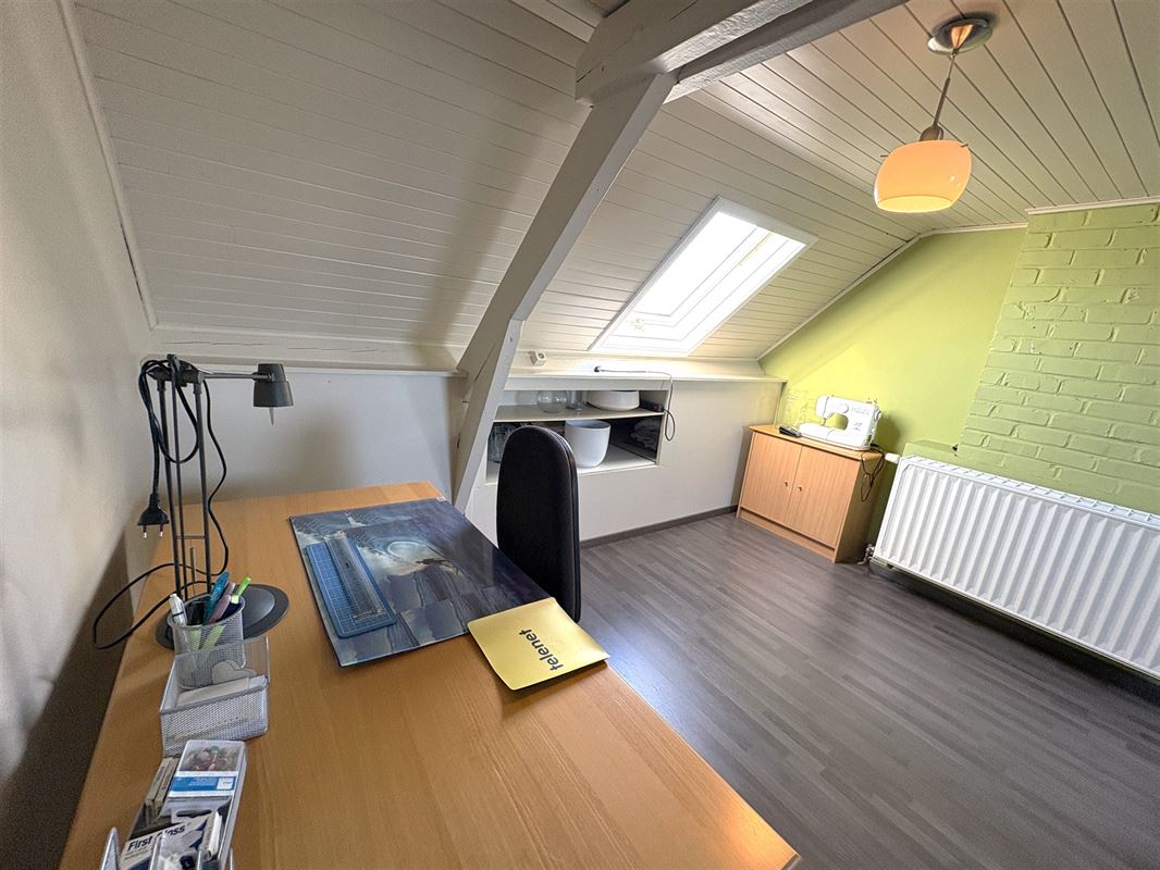 De zolder is vlot bereikbaar met vaste trap en kreeg een complete afwerking met zich mee : slaapkamer, bureau of hobbykamer vinden er vlot hun plaats.