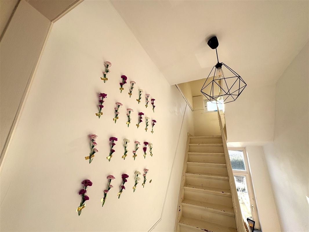 De inkom ontvangt met heel veel stijl en voorziet in een apart toilet en een traphal die doorsteekt tot op de tweede verdieping.