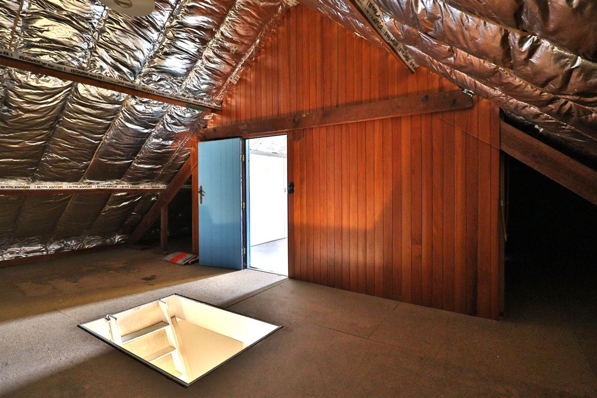 De zolder is bereikbaar via een trektrap en biedt een grote bergruimte, eventueel ook verder in te richten als vierde slaapkamer mits het voorzien van een vaste trap.