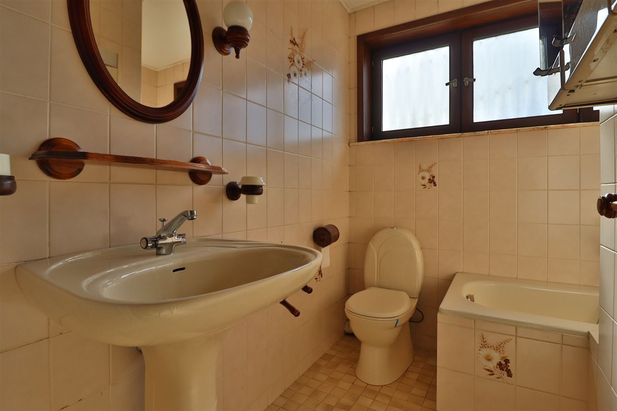 Rustig gelegen vinden we deze op te frissen woning bestaande uit de inkom, ruime en lichtijke woonkamer, keuken en apart toilet. Op de eerste verdieping zijn drie ruime kamers voorzien en de badkamer.