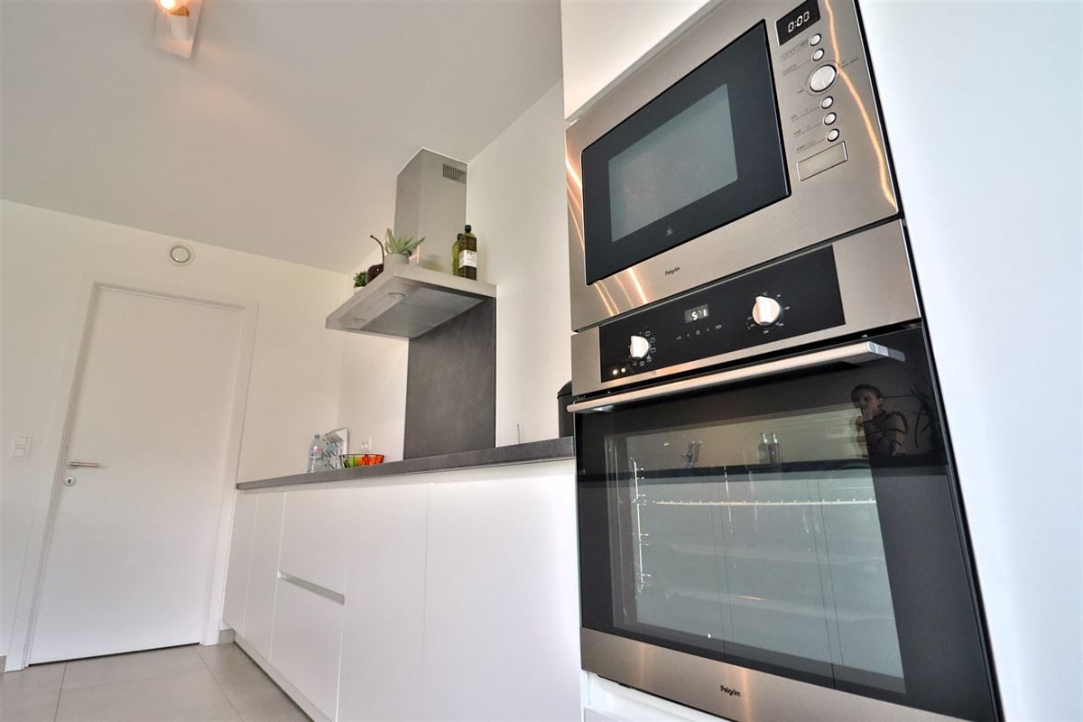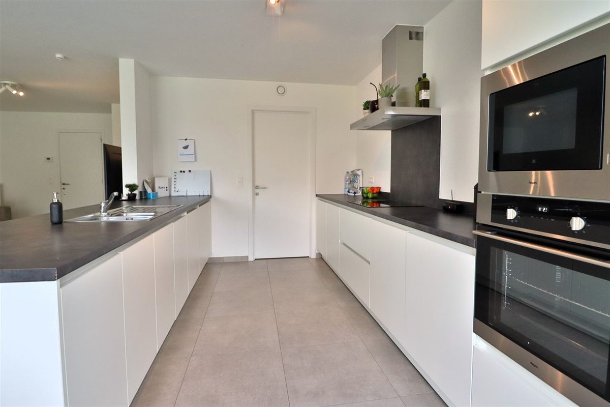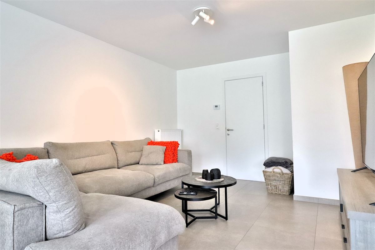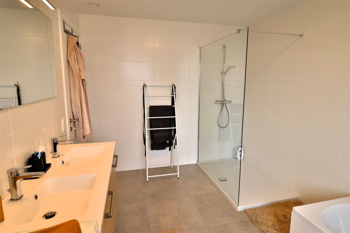 De voortuin met groene invulling brengt ons naar de inkom. Er is een apart toilet en een doorsteek naar de extra large leefruimte waar tuincontact centraal staat.