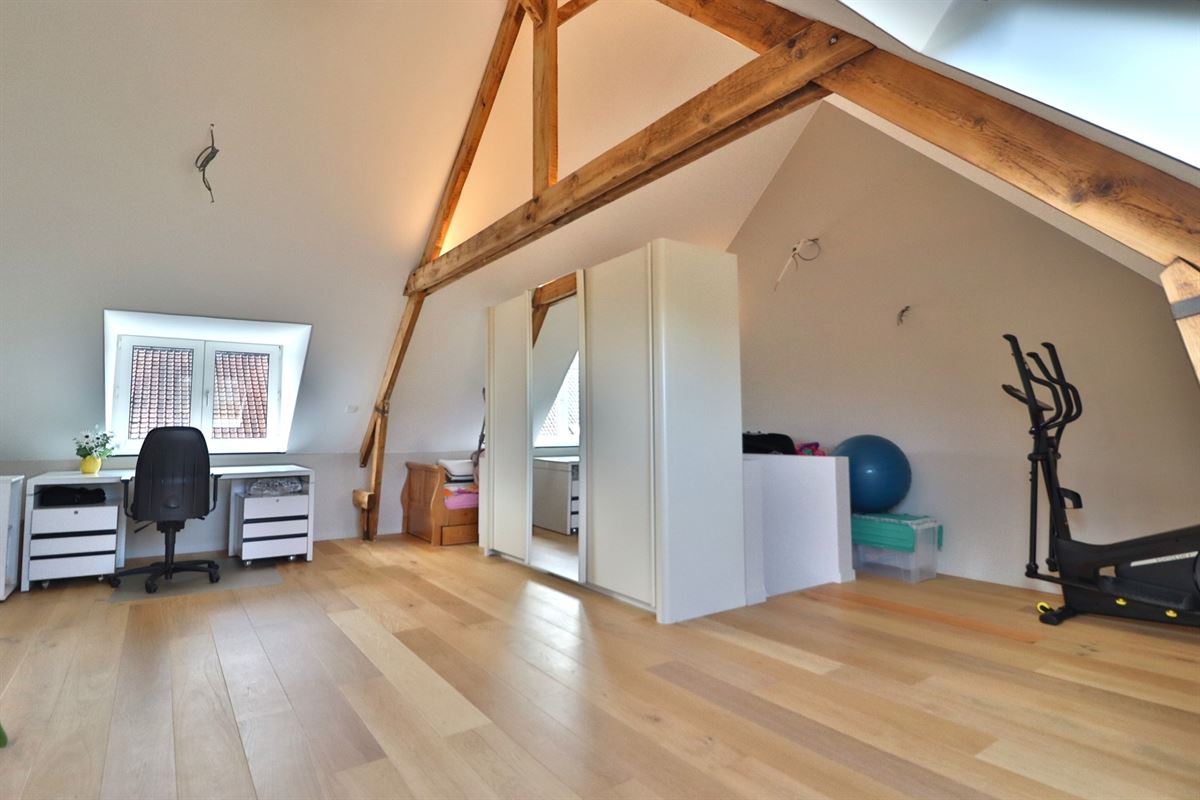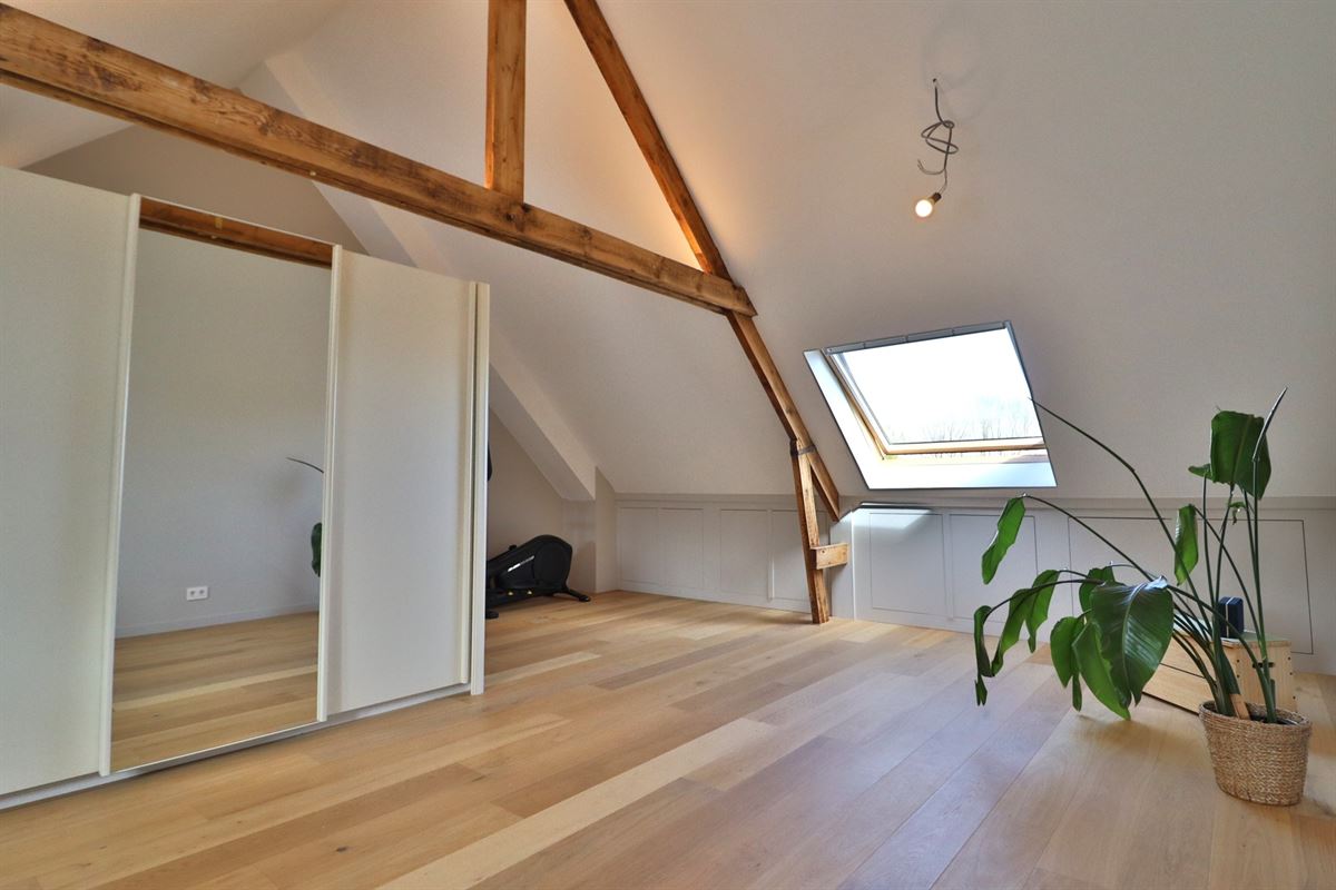 Op de eerste verdieping zijn twee ruime slaapkamers, waarvan de master bedroom met een inloopdressing, en de prachtige badkamer met dubbele wastafel, inloopdouche en toilet. De zolderverdieping (vaste trap) is volledig ingericht en eventueel nog op te delen in twee ruime slaapkamers, er zijn tevens wachtleidingen voorzien (warmtepomp/warm/koud water en afvoer) om eventueel een tweede badkamer te voorzien.