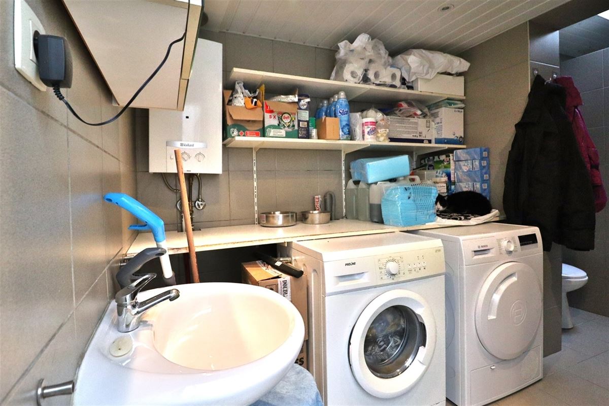 Op het gelijkvloers kom je binnen via de inkomhal, waarna je terechtkomt in de lichtrijke woonkamer. De keuken is functioneel ingericht. Verder is er een badkamer met lavabo, toilet, douche en aansluiting voor een wasmachine. Achteraan geniet je van een overdekte koer, een handige tuinberging én een leuke tuin perfect om te ontspannen of voor wie graag wat groen om zich heen heeft.