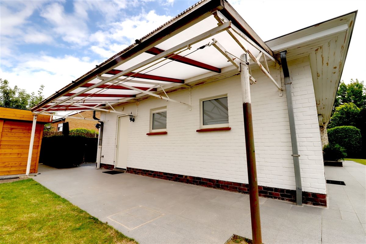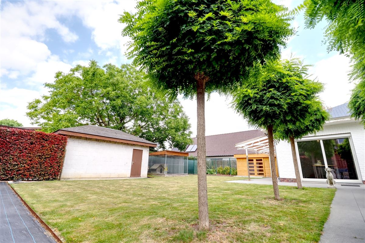 Er is een aparte garage met vlotte toegang tot de tuin.