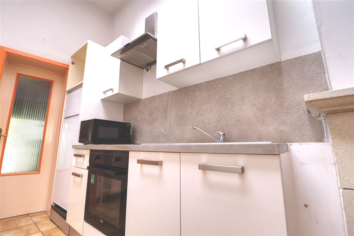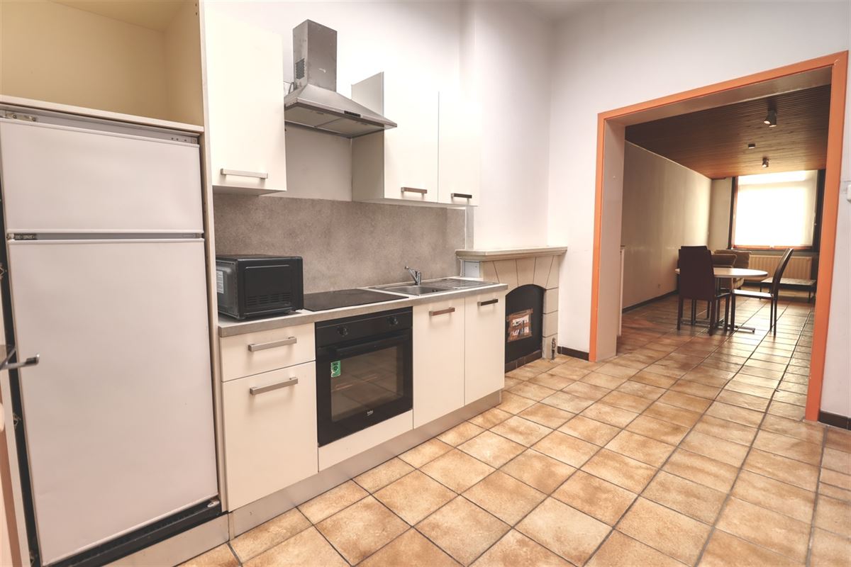 Weg van de straat zorgt de inkom voor een hartelijke welkom.  De aansluitende leefruimte heeft een open karakter met zithoek, eethoek en nette keuken.