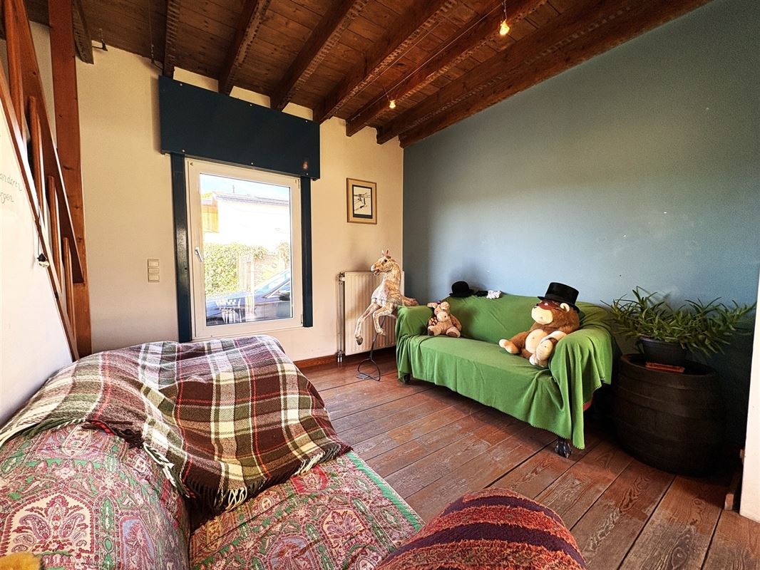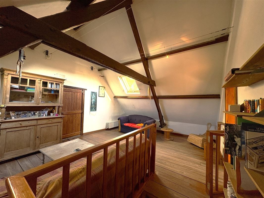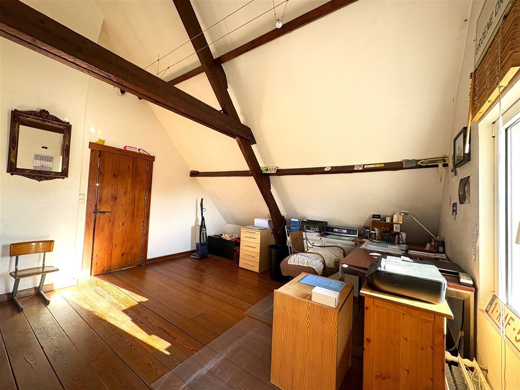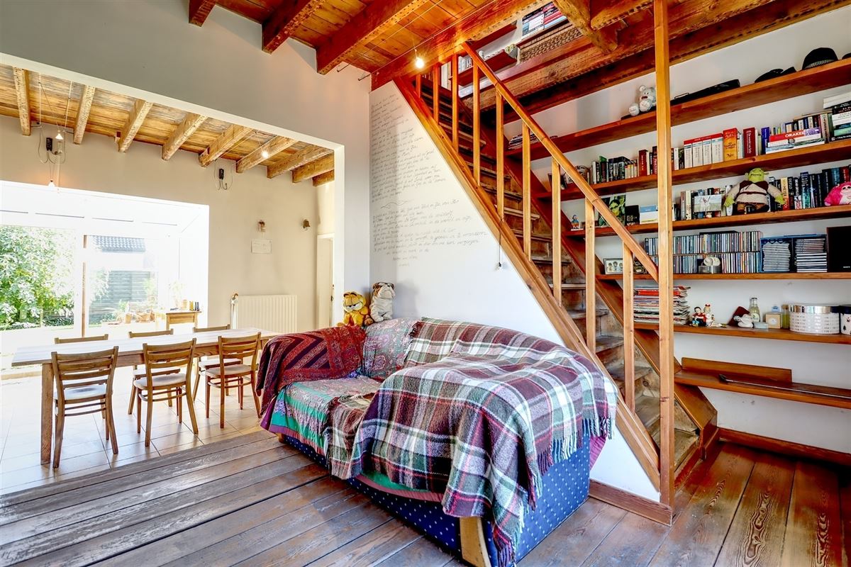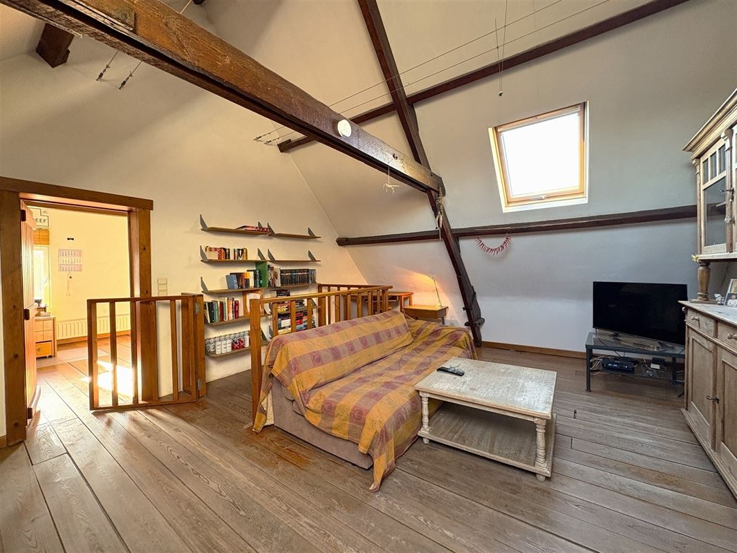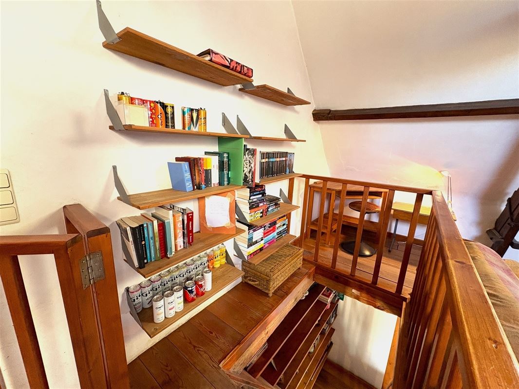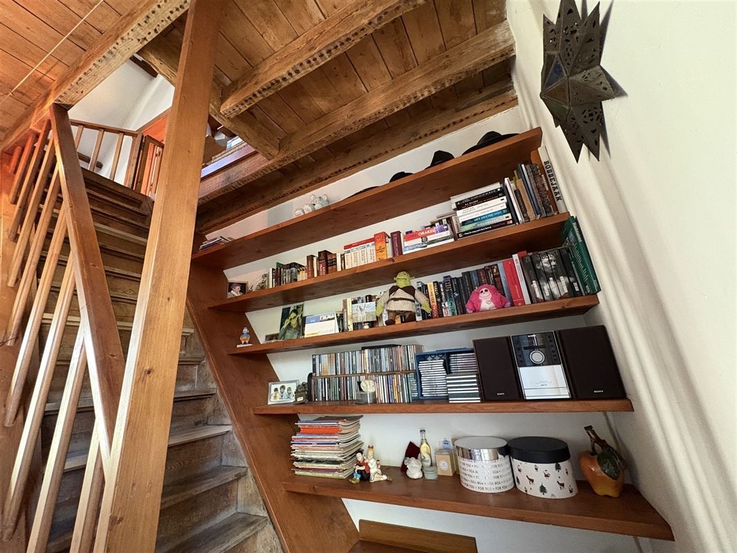 De open traphal met bibliotheekwand verbindt het verdiep dat voorziet in 3 mooie ruimtes. Elke ruimte heeft er nu zijn eigen functie maar is telkens perfect inzetbaar als slaapkamer.