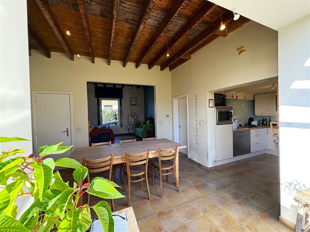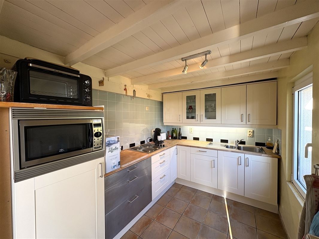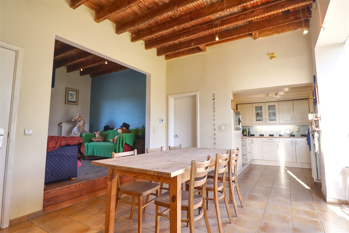 De inkom zorgt voor een hartelijke welkom en steekt door naar een opmerkelijke leefruimte waar eethoek en goed voorziene keuken vlot met elkaar verbonden zijn en waar tuinzicht domineert.