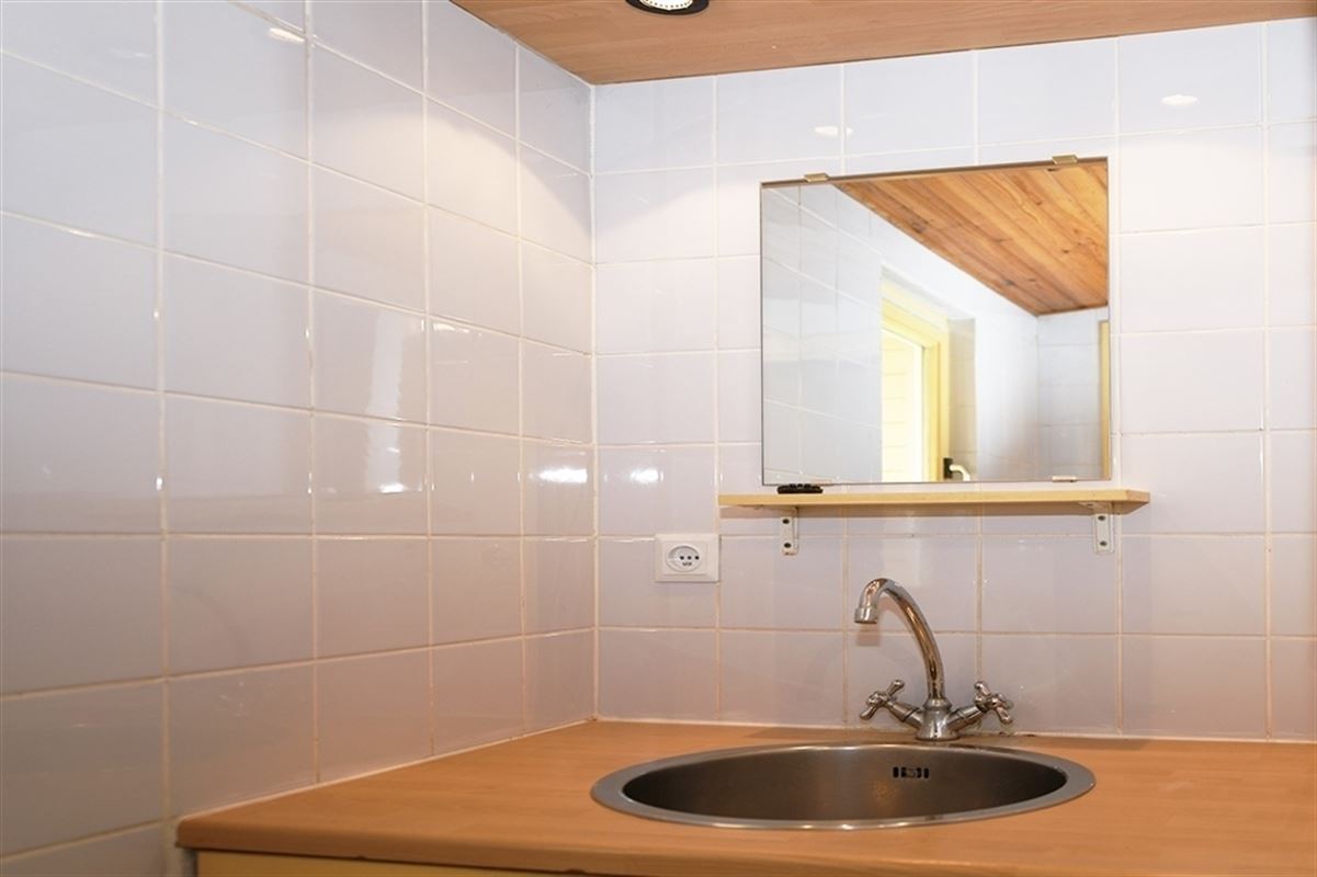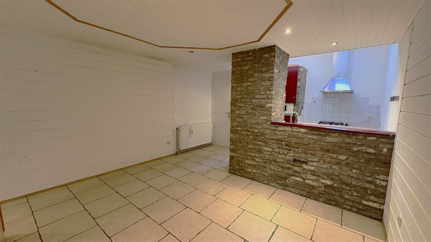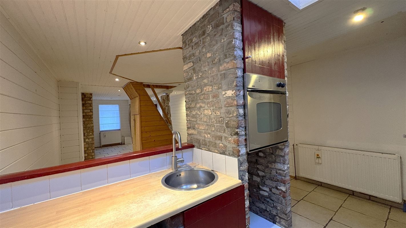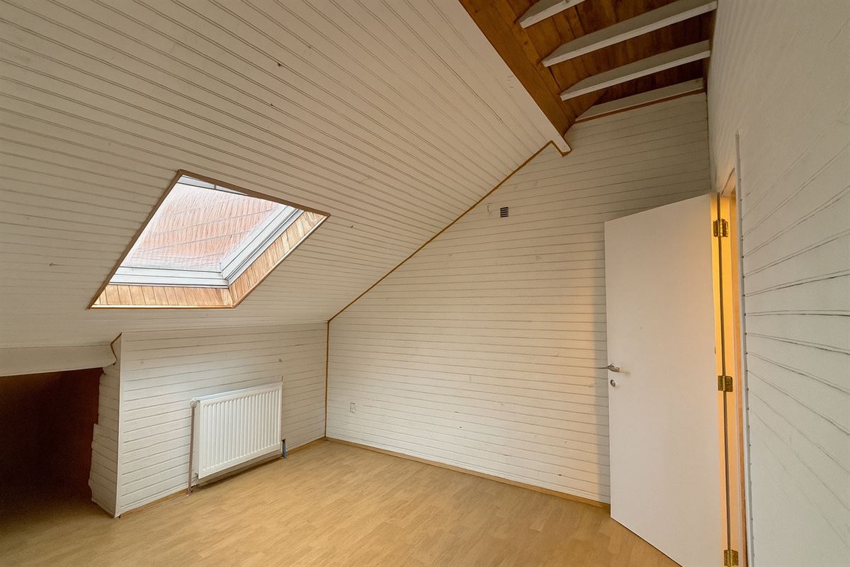 Grote leefruimte met geïntegreerde keukenhoek waar een mooie dak uitbouw zorgt voor heel veel licht.