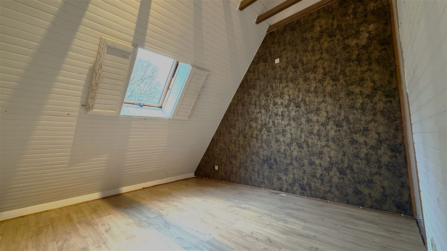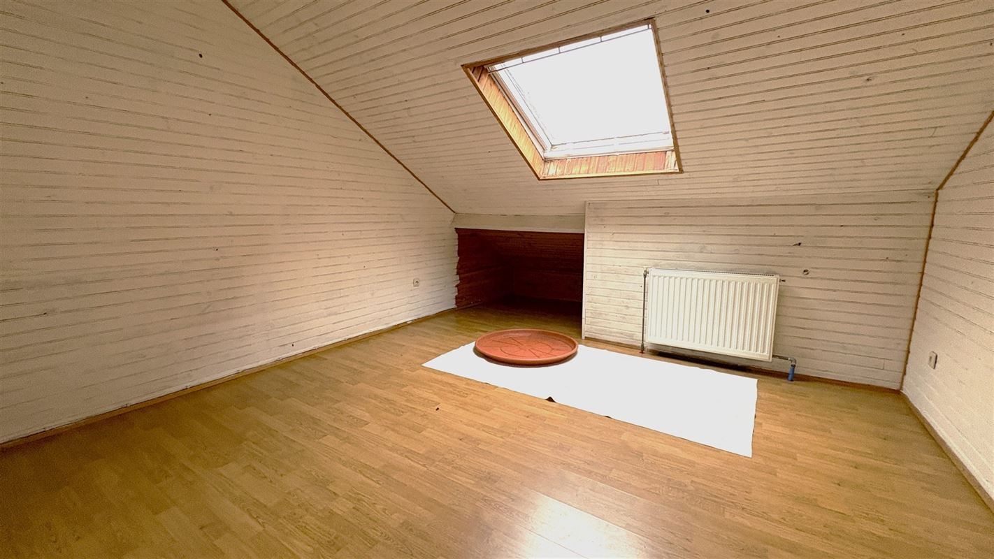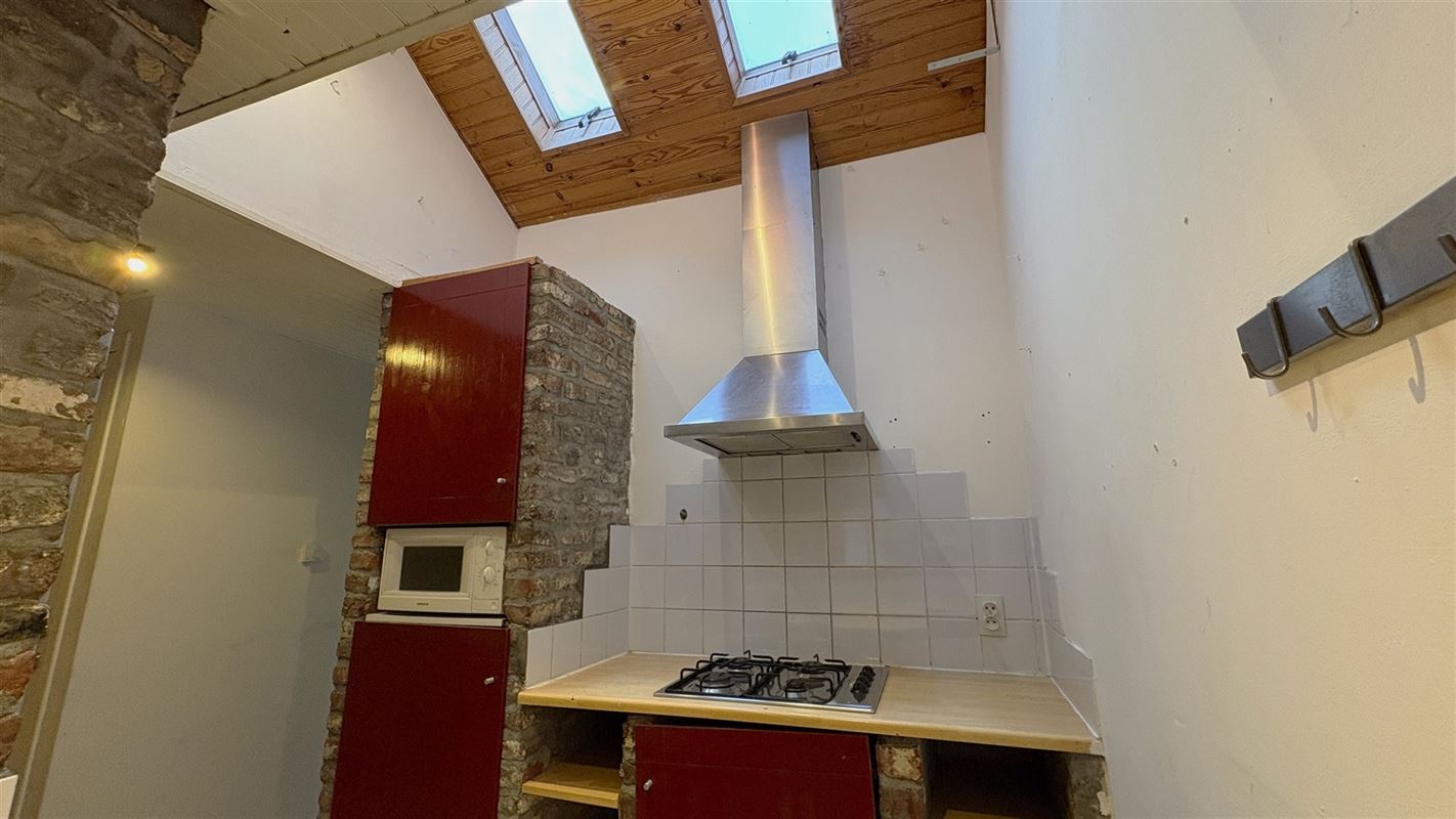 Grote leefruimte met geïntegreerde keukenhoek waar een mooie dak uitbouw zorgt voor heel veel licht.
