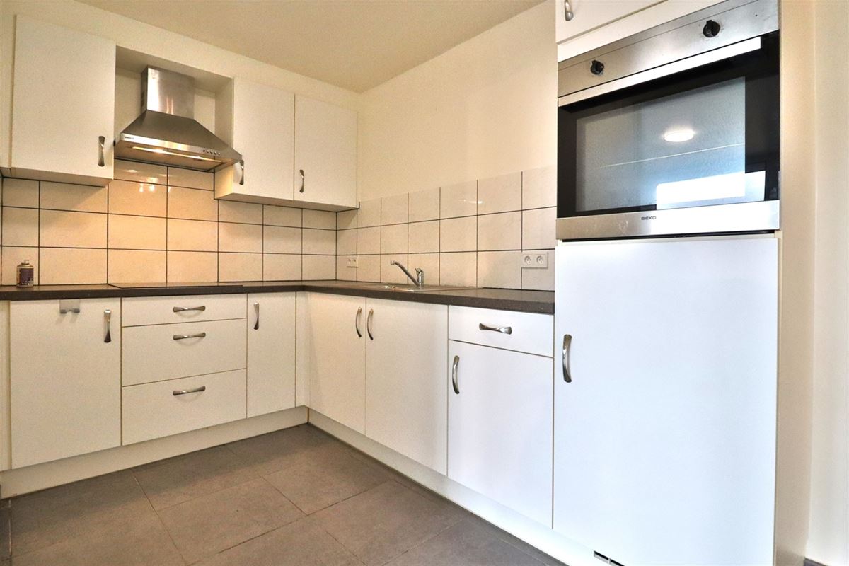 De leefruimte met bijhorende keukenhoek houdt vlot contact met het terras.  Ook de aanpalende slaapkamer geniet van een terras.