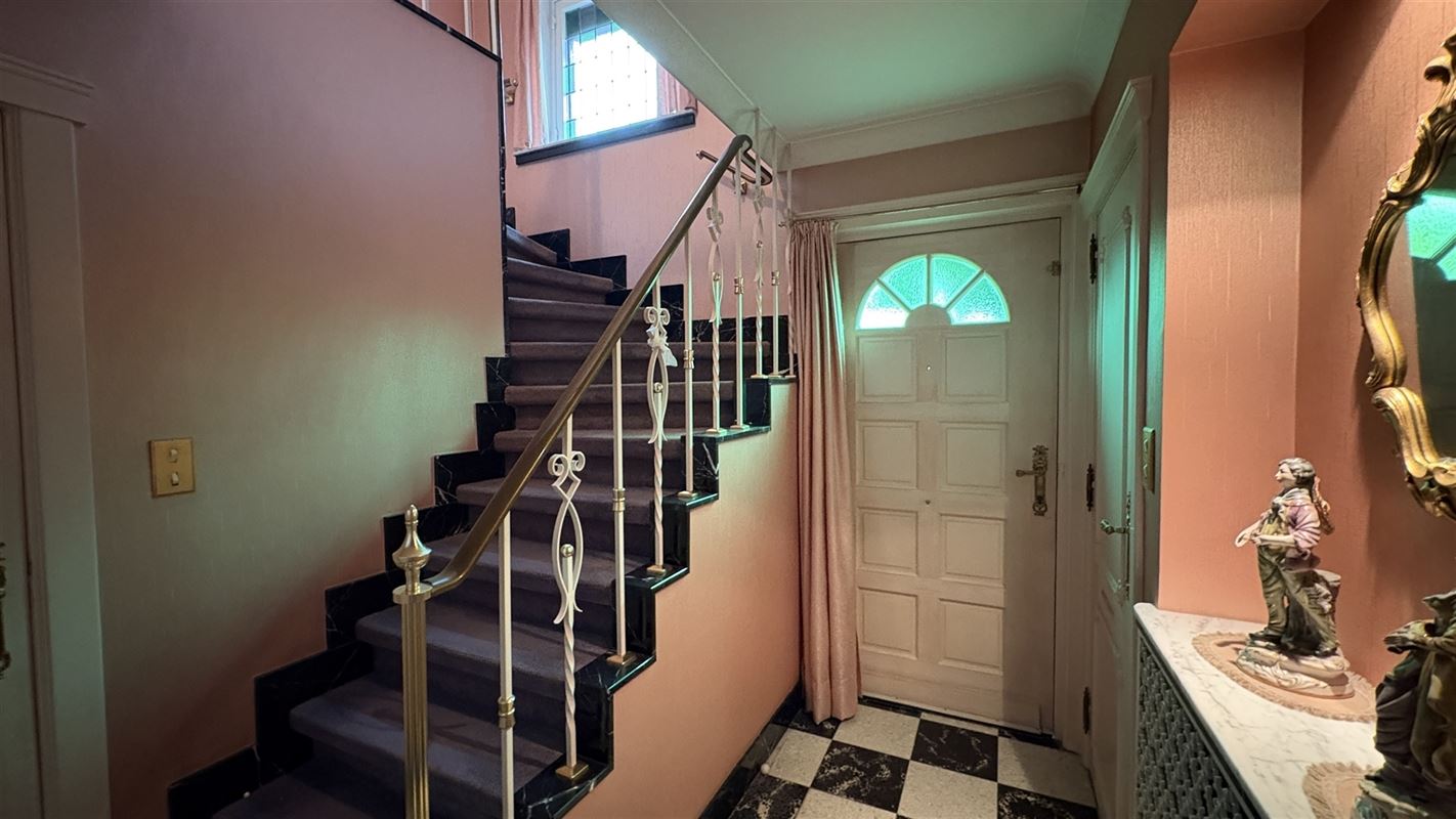 Weg van de straat zorgt de inkomhal met centrale traphal voor een warme welkom.