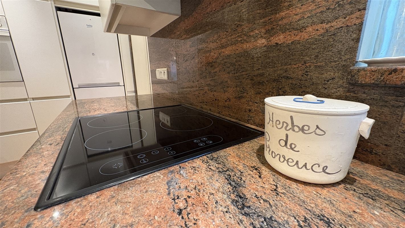 De keuken maakt deel van het geheel en kreeg een mooie invulling.