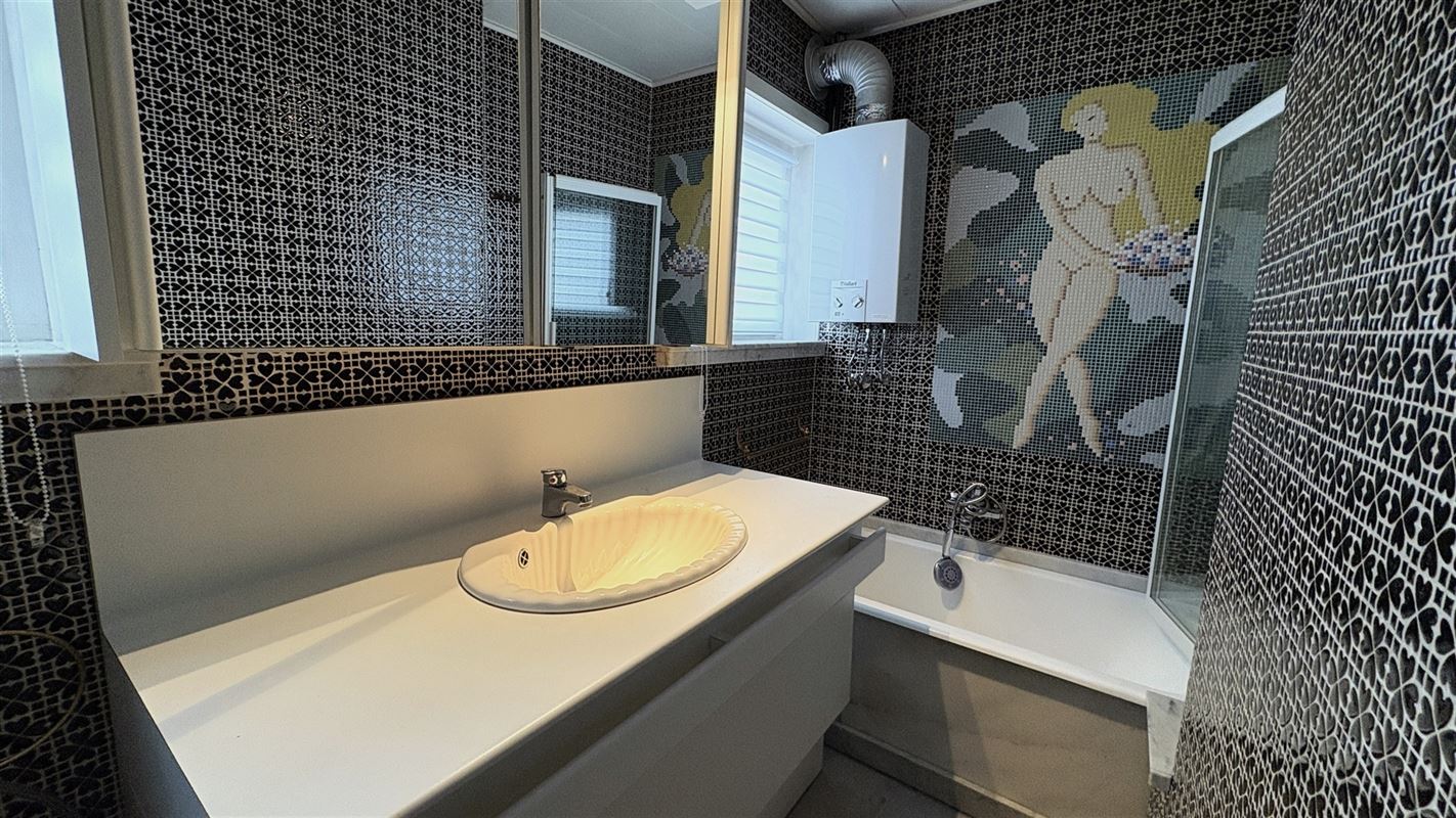 Er is een mooi aangeklede, nette badkamer, een grote garage met wasplaats, een nette kelder en een grote zolderberging.