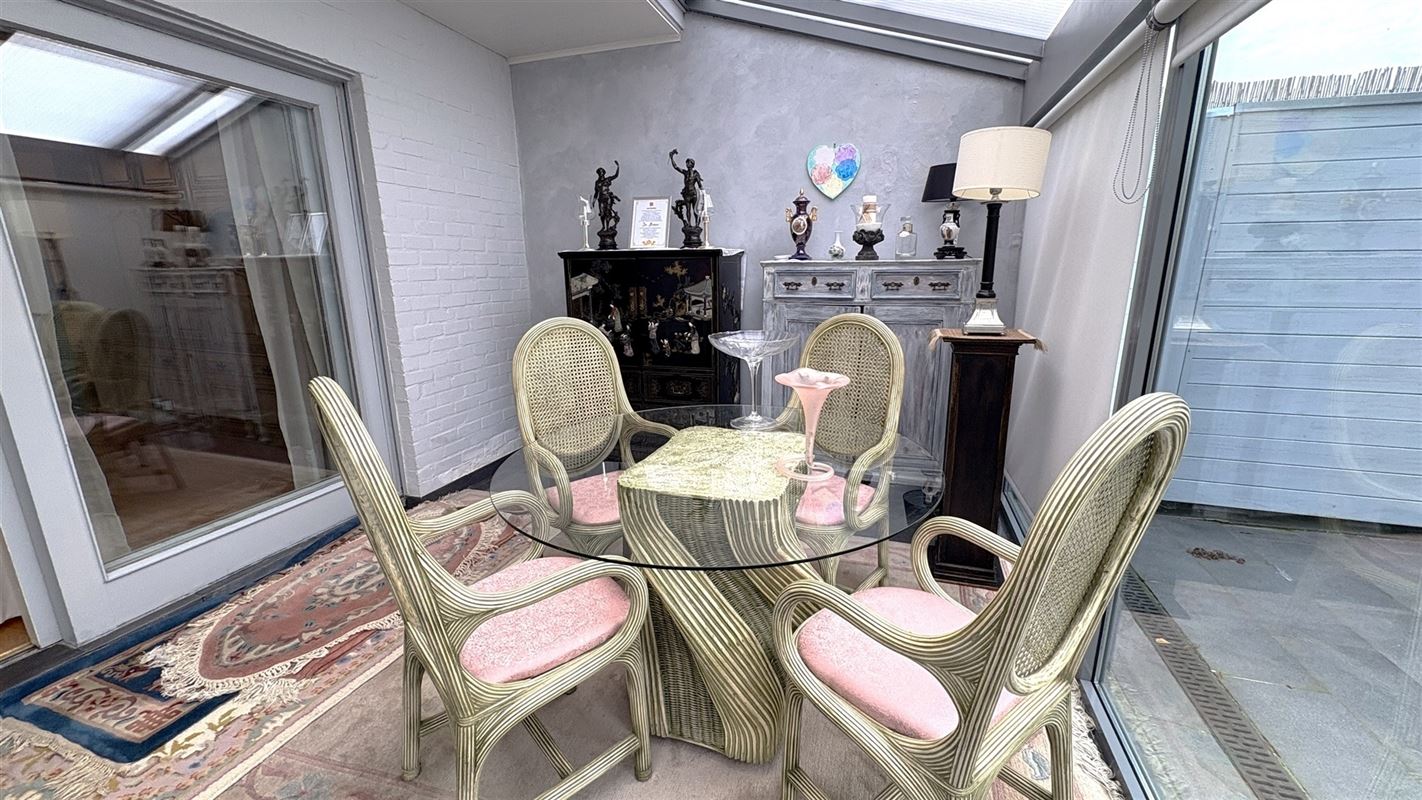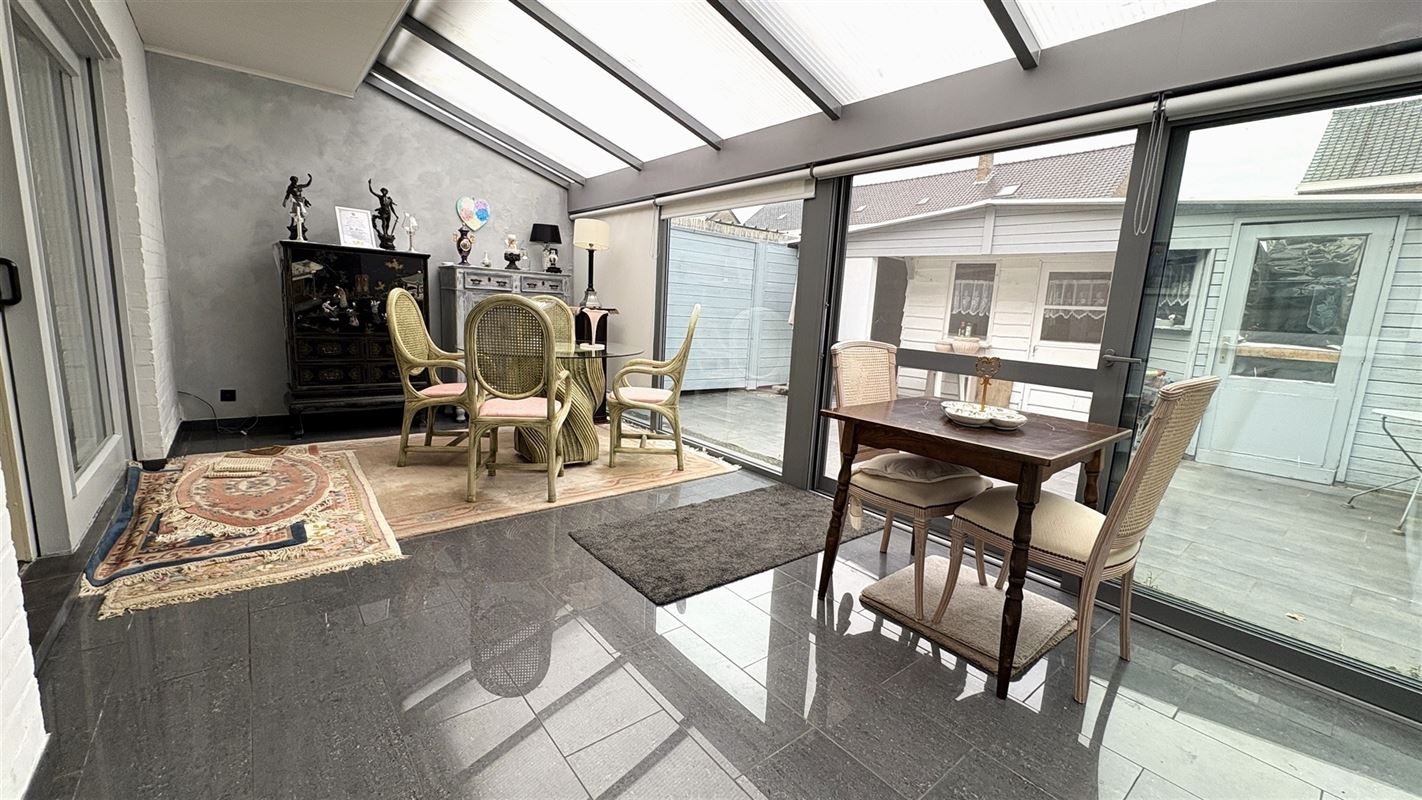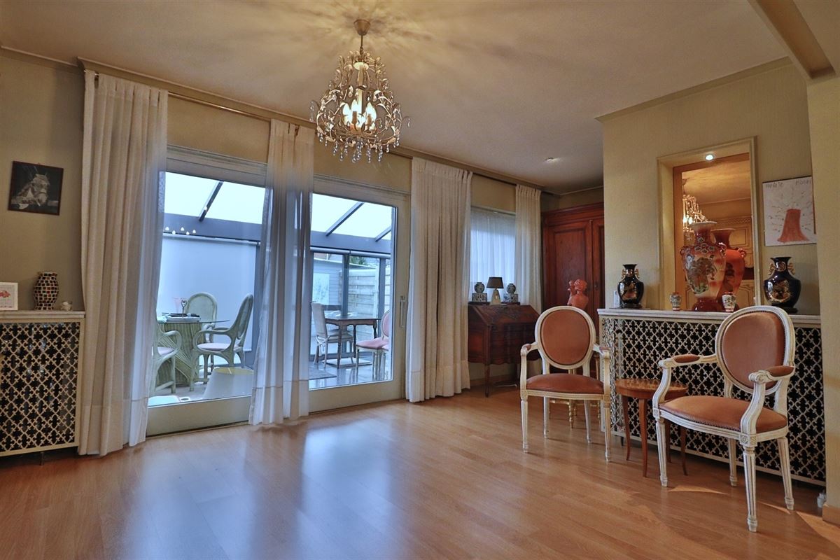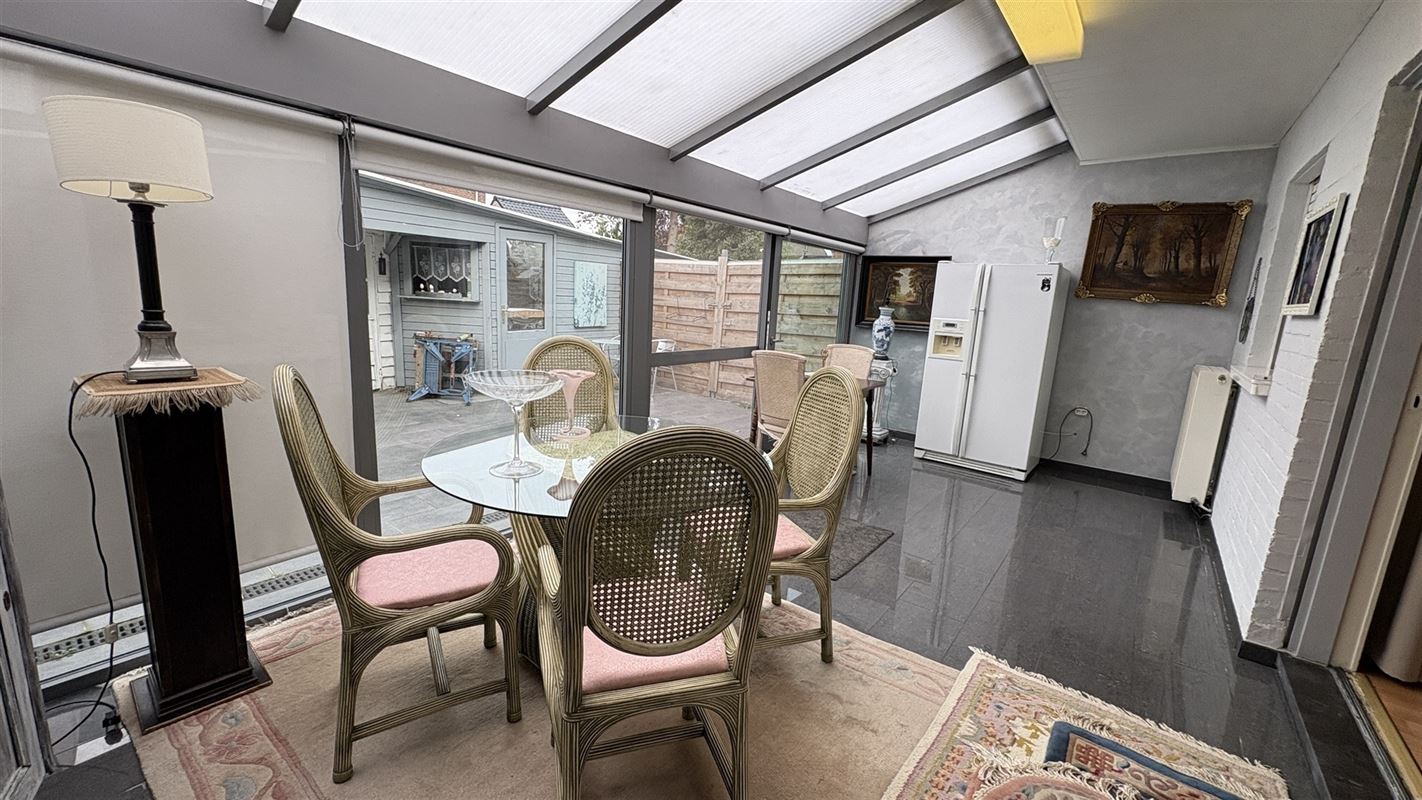 De leefruimte pakt uit met zithoek, eethoek en ontspanningsruimte, de diepe uitbouw kan je naar believen invullen.