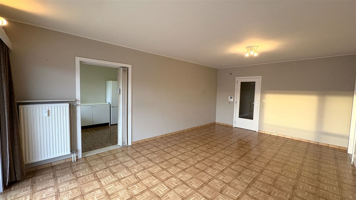 De leefruimte pakt uit met een mooie breedte en een aangenaam open zicht waarvan ook de aansluitende keuken geniet.