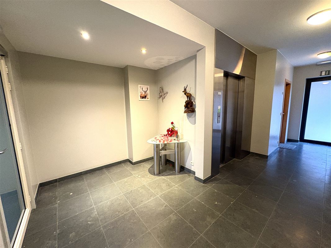 De lift brengt ons naar het 2de verdiep waar dit zalig woonappartement ons verwelkomt.