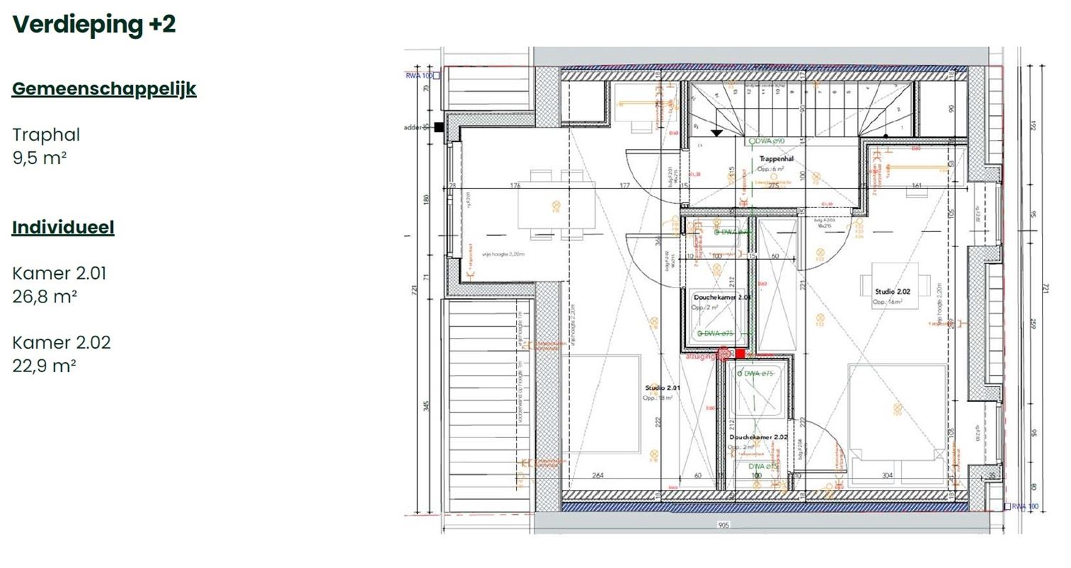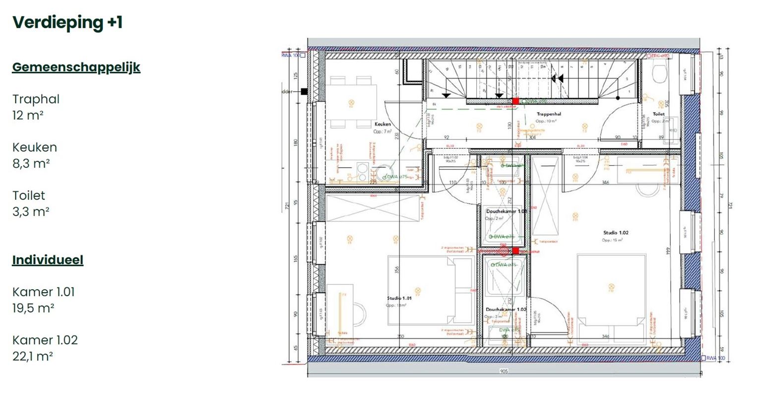 Gelegen in het project "WALLE" vinden we deze kleinschalige studentenresidentie met 4 nieuwbouwkamers (20-27m²)